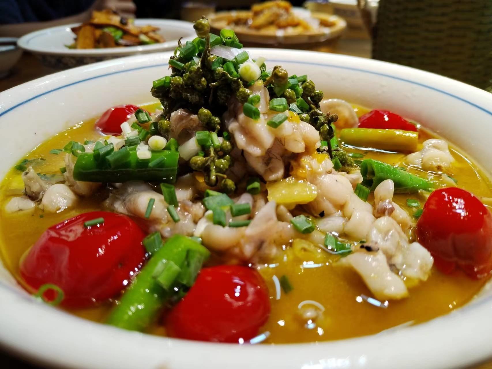 湘菜美食上菜咯,招牌泡椒牛蛙,典型的泡椒牛蛙是一道色香味俱全的湖南湘菜名菜。最常见又易烹制,成菜后味咸鲜,肉细嫩,泡椒香气浓郁,高端大气上档次,牛蛙肉嫩汤鲜,肉质Q弹,汤汁鲜美,一筷子下去雪白蛙肉滴着金黄色汤汁,很入味,超级下酒下饭。