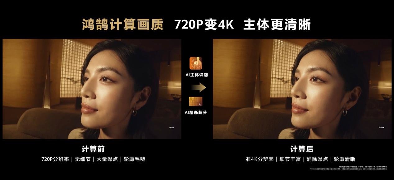 在短视频、直播、社交等并进的互动时代,“得画质者得人心”,超高清成为越来越多用户希望可以享受到的画质核心体验之一。华为智慧屏 V 3代带来全新升级的鸿鹄计算画质技术。它能够依托强大的神经网络模型和强大算力,对画面主体智能识别并优化提升,让720P变4K,模糊画质变高清,画面更有立体感,实现老片重看。可以说,华为智慧屏 V 3 代不仅让经典的影片和剧集焕发新生,也开创了高画质电视进入软硬结合的“计算”时代。