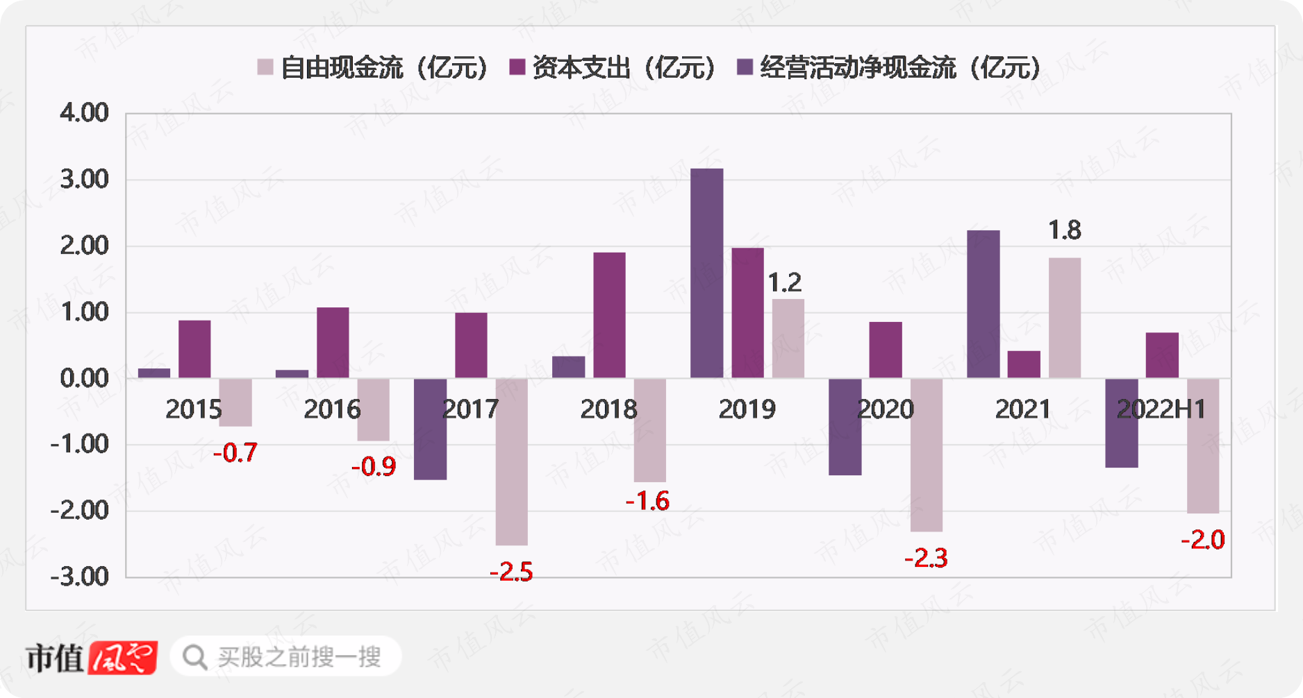 较高的应收账款占比导致公司营运资金方面存在一定的压力,历史上经营活动净现金流均表现不佳,大部分年份自由现金流为负数。