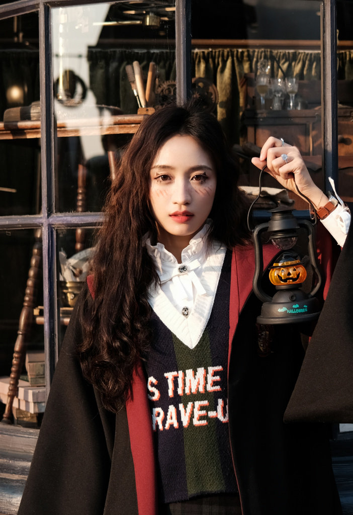 黄婷婷万圣节游乐园写真 穿魔法袍出镜变美魔女
