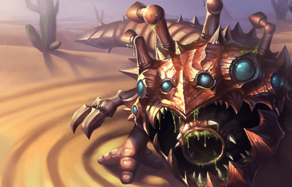 深渊巨口·克格'莫是玩家们俗称的“大嘴”,也是这款游戏里公认的大后期ADC,前期同样打不出伤害,而且还没有位移,所以只要拖到后期的大嘴靠着装备的加持和技能的效果才可以打出伤害,而最可怕的就是他的射程非常的远,加上W技能“生化弹幕”的百分比伤害,可以对肉造成非常恐怖的伤害,因此也被玩家称作“移动的炮台”。