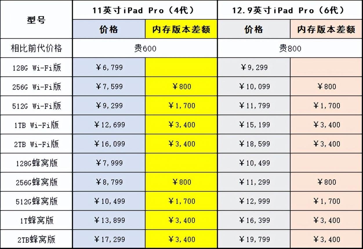 从价格来看,虽然与iPad Pro 2021相比,iPad Pro 2022的变化主要是升级了M2处理器,可11英寸版价格涨了600元、12.9英寸版价格涨了800元。此外,虽说进一步提升了处理器性能,可iPad Pro 2022不同内存版本之间的鸿沟,注定了性价比不会是它的优势。