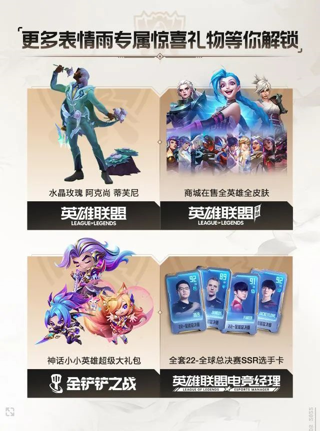 根据官方消息,福袋里可以抽到英雄联盟、英雄联盟手游、金铲铲之战、英雄联盟电竞经理四款游戏的道具。