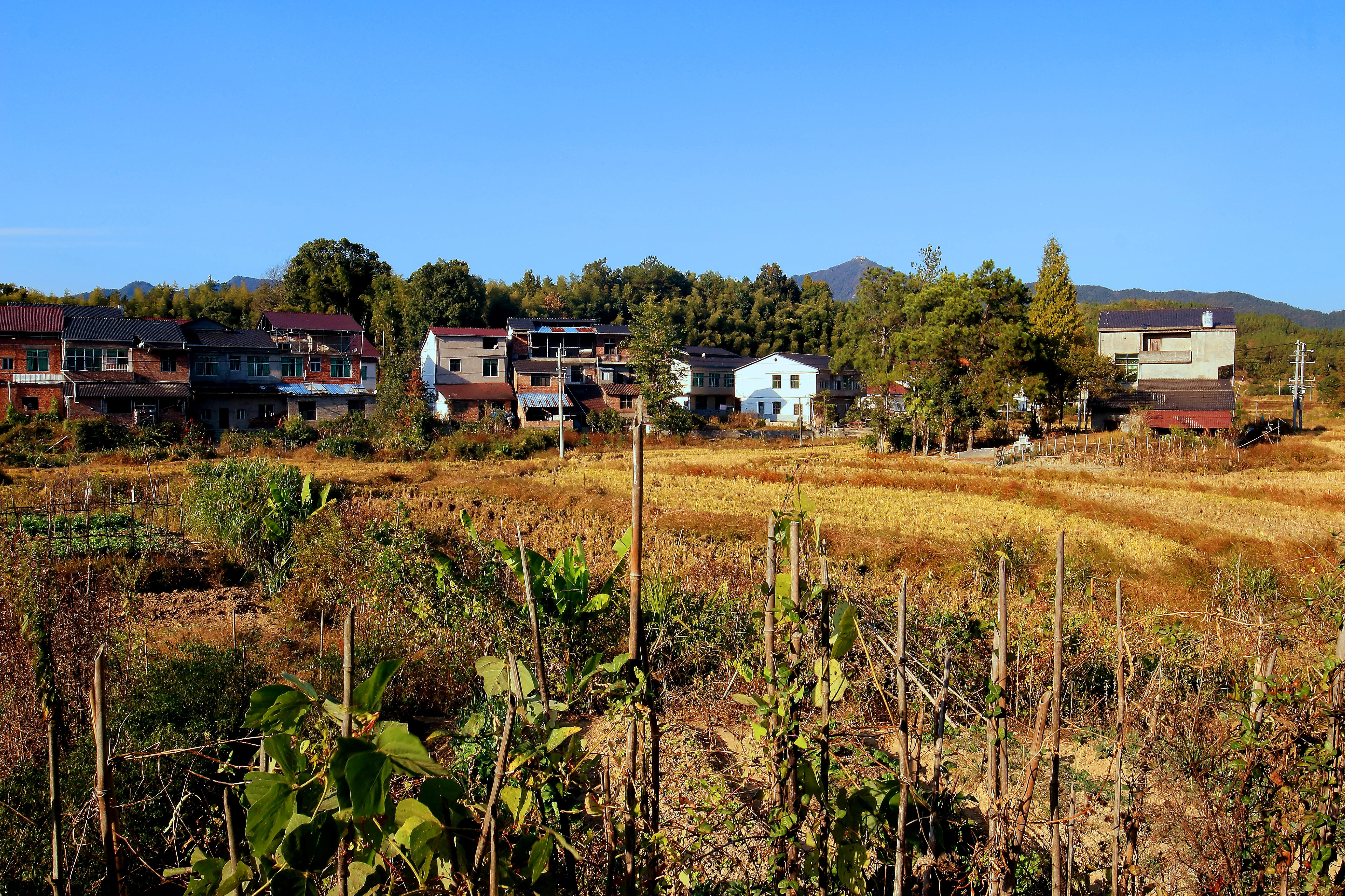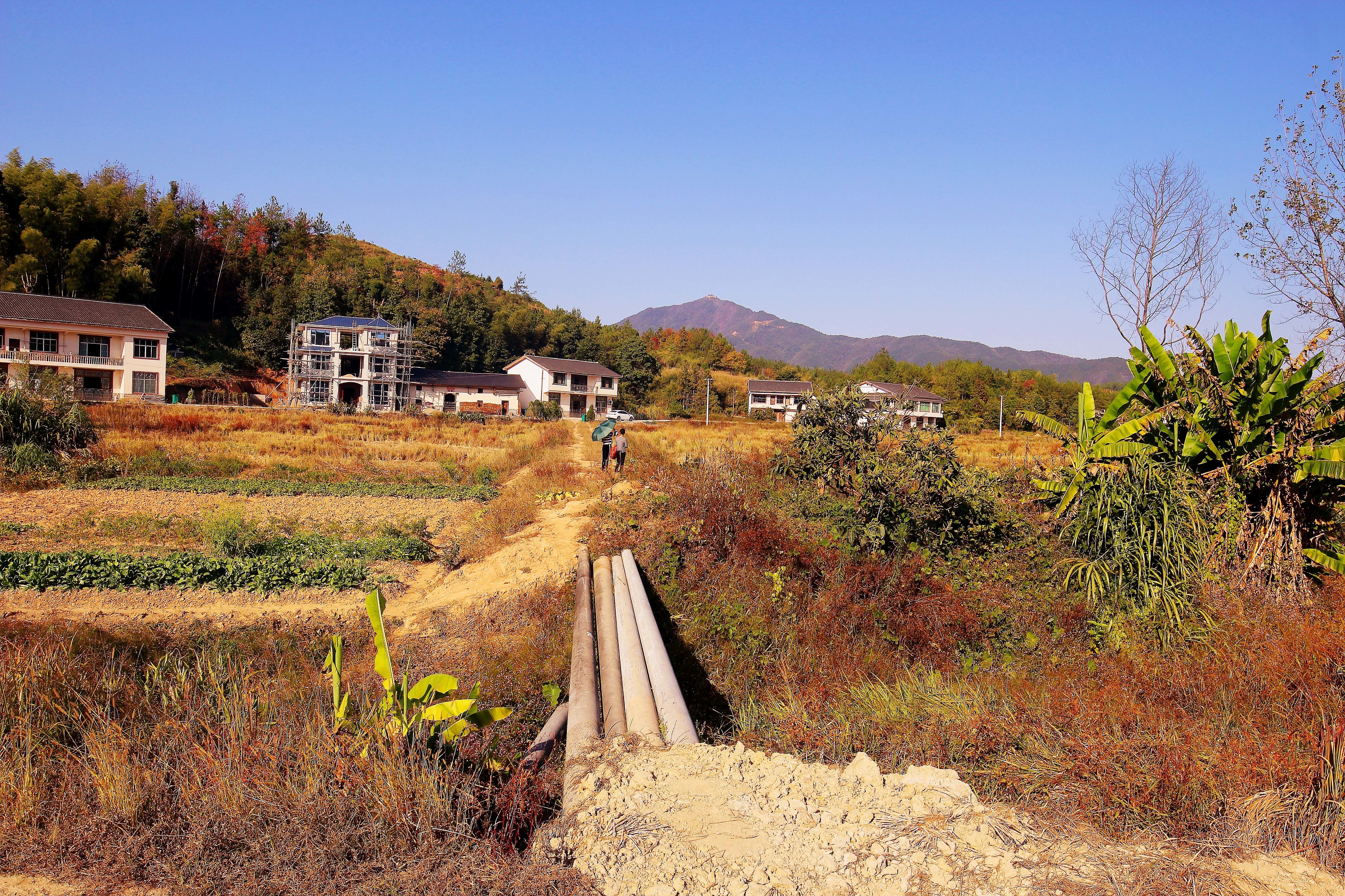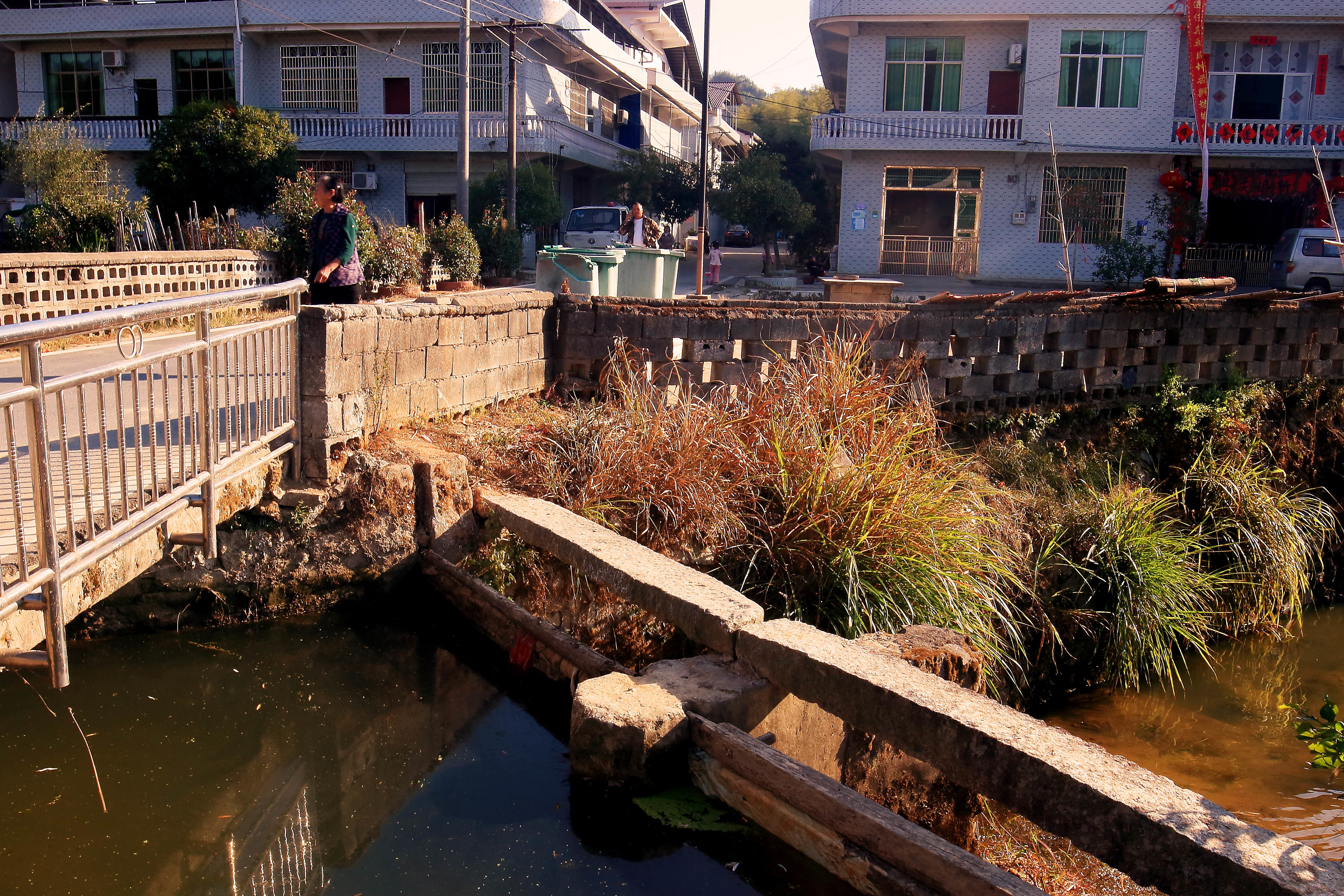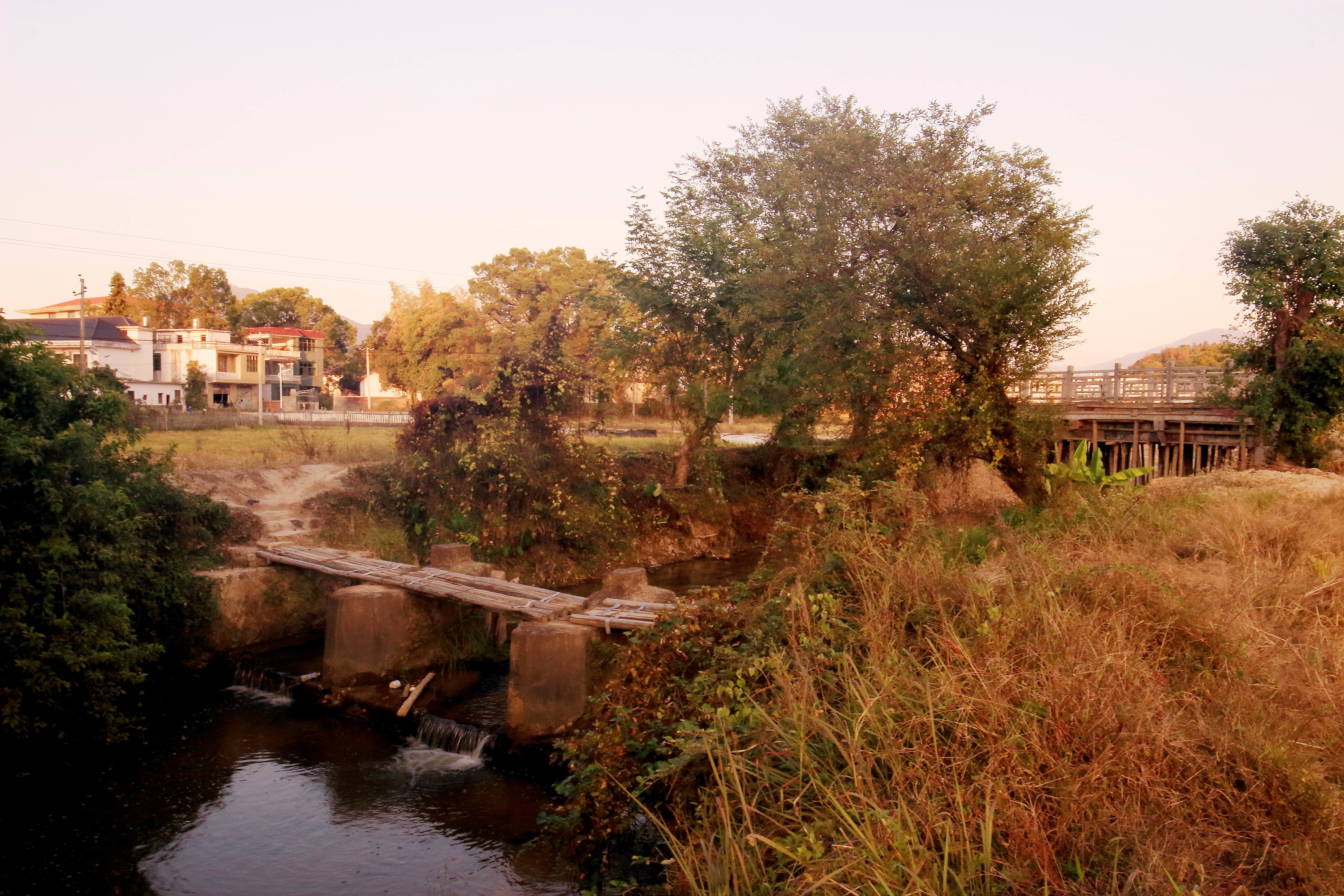 范浆村的村中心点,有第二次栏的水坝,水灌溉着两边田地。河边乡亲的人家,国庆节娶亲的喜联,飘动在风中。