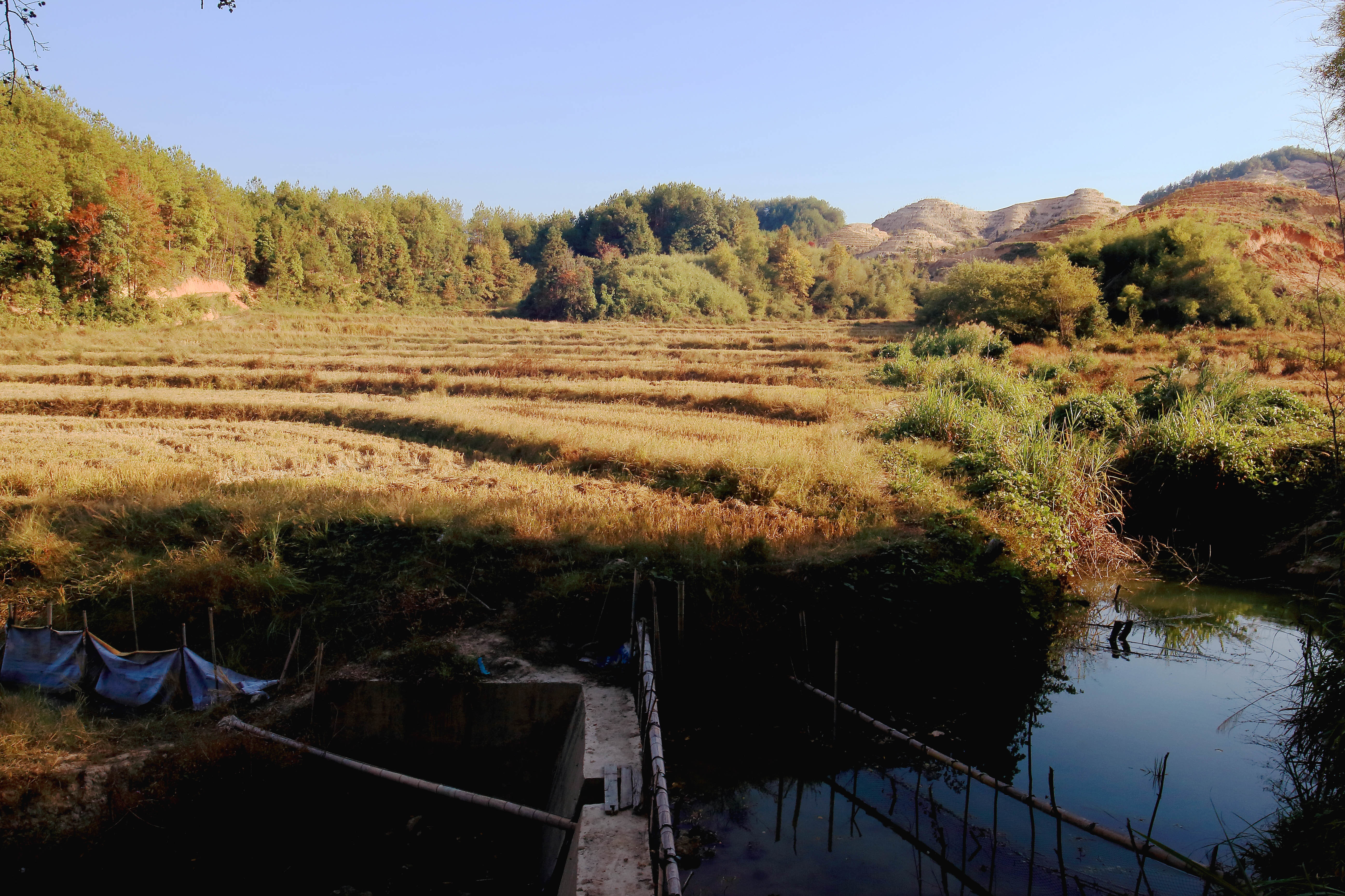 拍摄的长坑源的源头,始于一片深水田,本地人的叫法,意思是长年有水、沼泽湿地改造过来的田,这样的田黑土肥沃,不要过多的施肥,长出高产稻谷,缺点是田底冰冷,只能种一季中晚稻,还容易杂草丛生,腐泥深不能用牛、机器犁田,靠人力耕种。