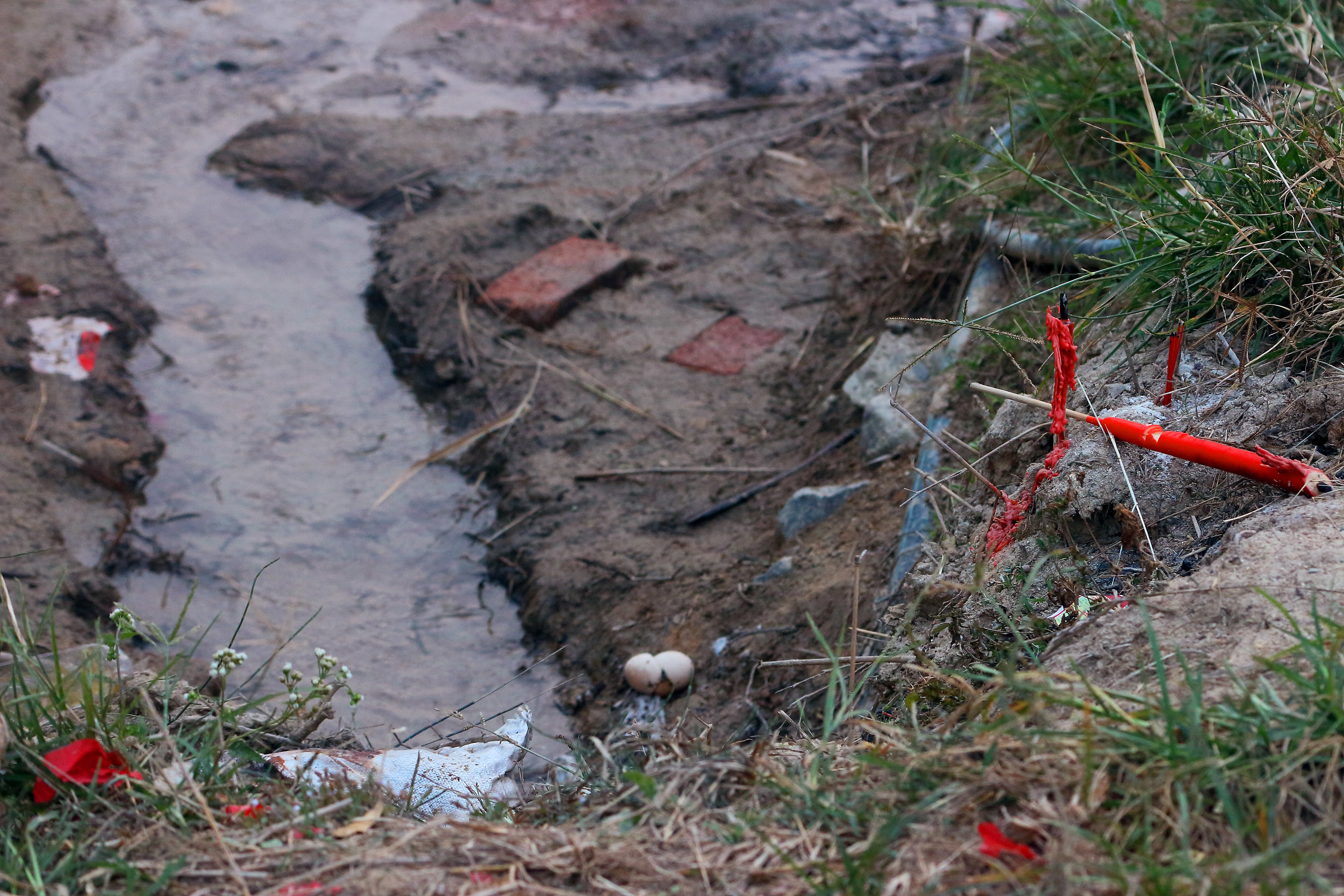 下麦园栏水坝下来五十米后,有最后一处水补源地,发源在六岭败山脚下的深水田,流过2000米左右与门前河汇合。拍摄地是这条溪流发源地,这是一位老人去世后祭谢河神留下,家乡的风俗人过世后,先要谢河、井神,再报“社”,告之某人已离世,意思是谢谢您在人世间水的无私给予。