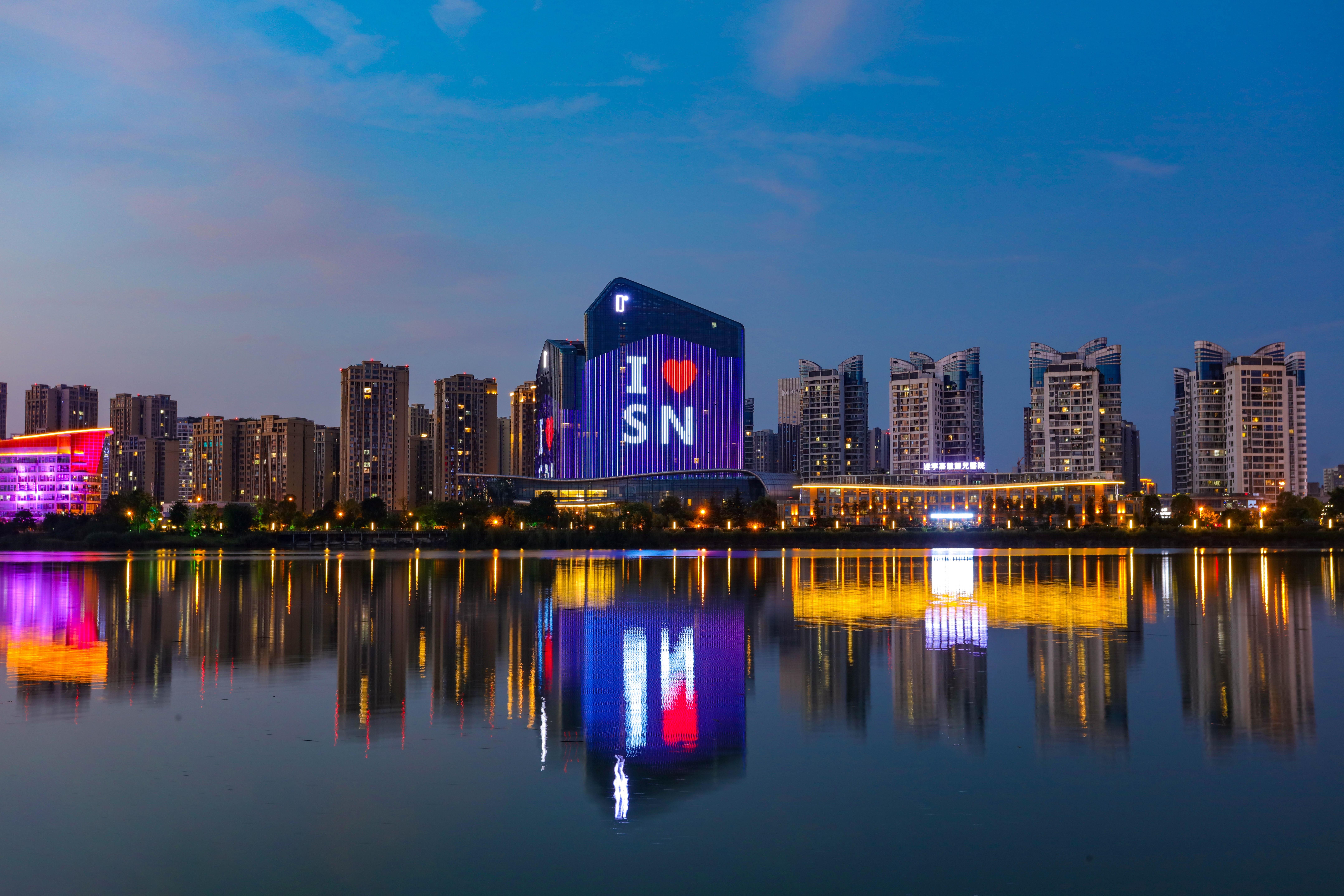 ▲2019年9月26日晚,四川省遂宁市涪江两岸,各个重要建筑群、旅游景点的夜景灯光全新亮相,吸引了众多游人观看。图/IC photo
