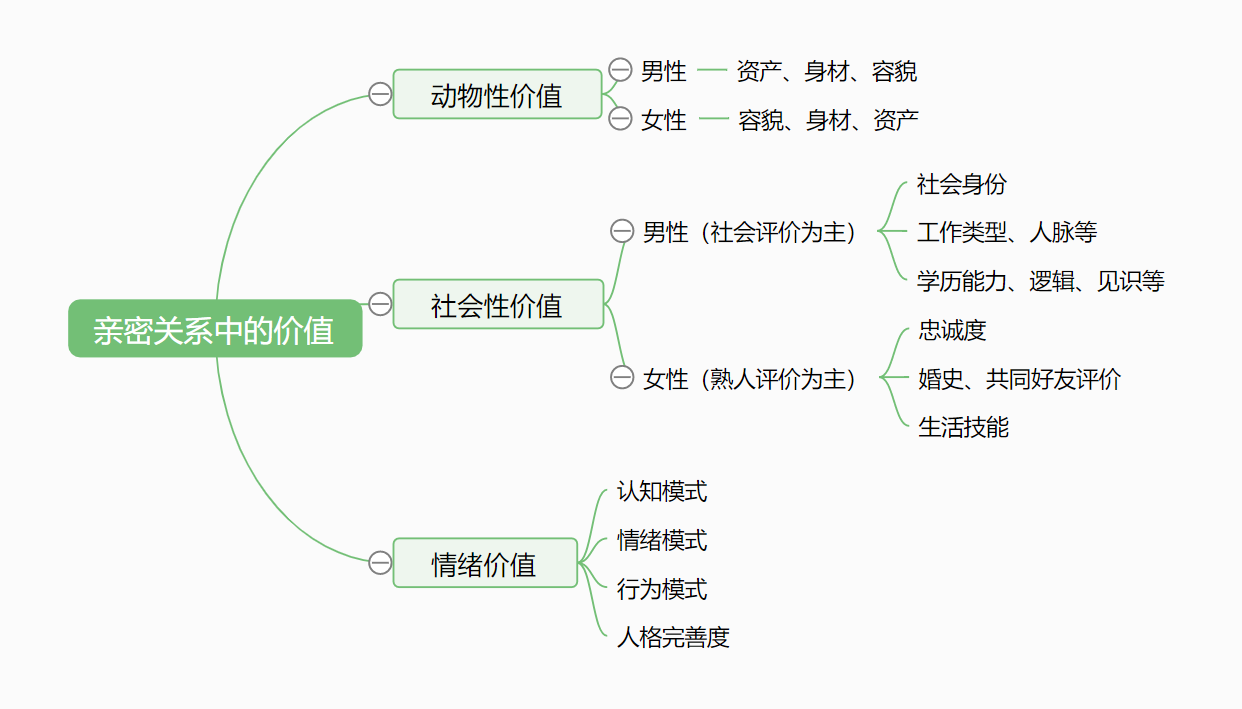 作者将亲密关系中的价值分为动物性价值、社会性价值和情绪价值三大类。