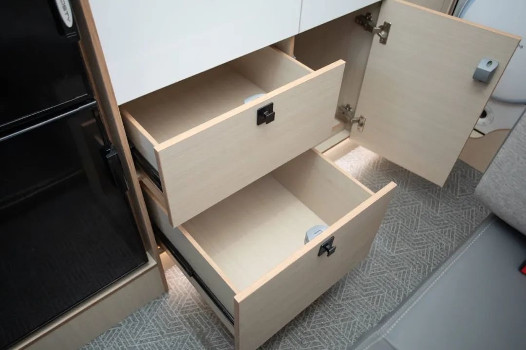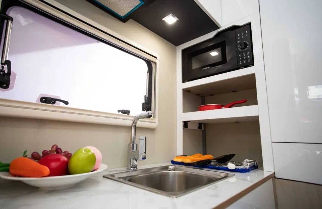 厨房操作台下方还有多个储物空间,整车储物空间丰富,便于放置更多物品。