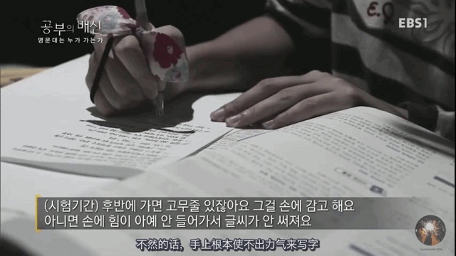怕耽误做题,还要给自己上“酷刑”:把皮筋、手和笔绑在一起,手指没力气了,还可以靠手腕发力: