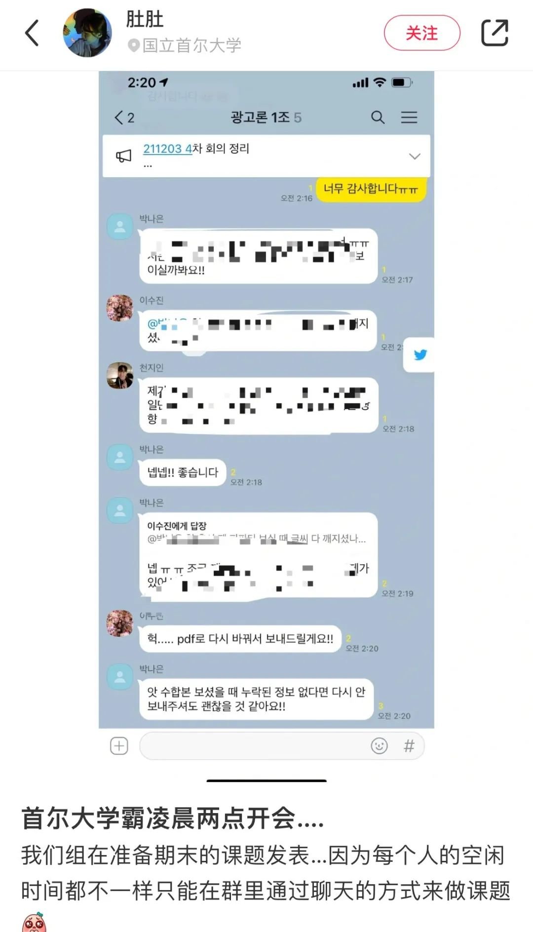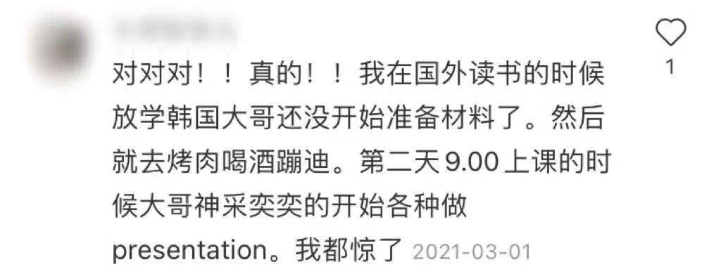 一些在韩留学生的真实感悟,也都震惊于韩国人拼命学习的精神。哪怕是首尔大学的学霸,凌晨两点也会起来开会发表课题: