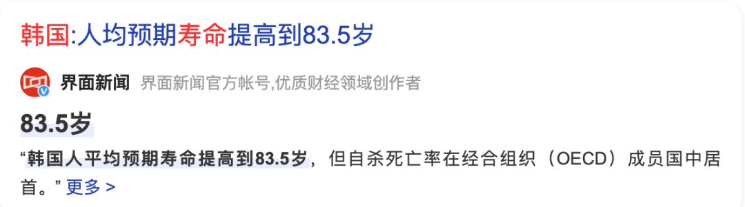 不过比较神奇的一点是,别看韩国人睡眠时间短,全民平均预期寿命却提高到83.5岁,比我国还高了5岁。探索人类熬夜极限的韩国人,这是彻底把睡眠进化掉了吗?