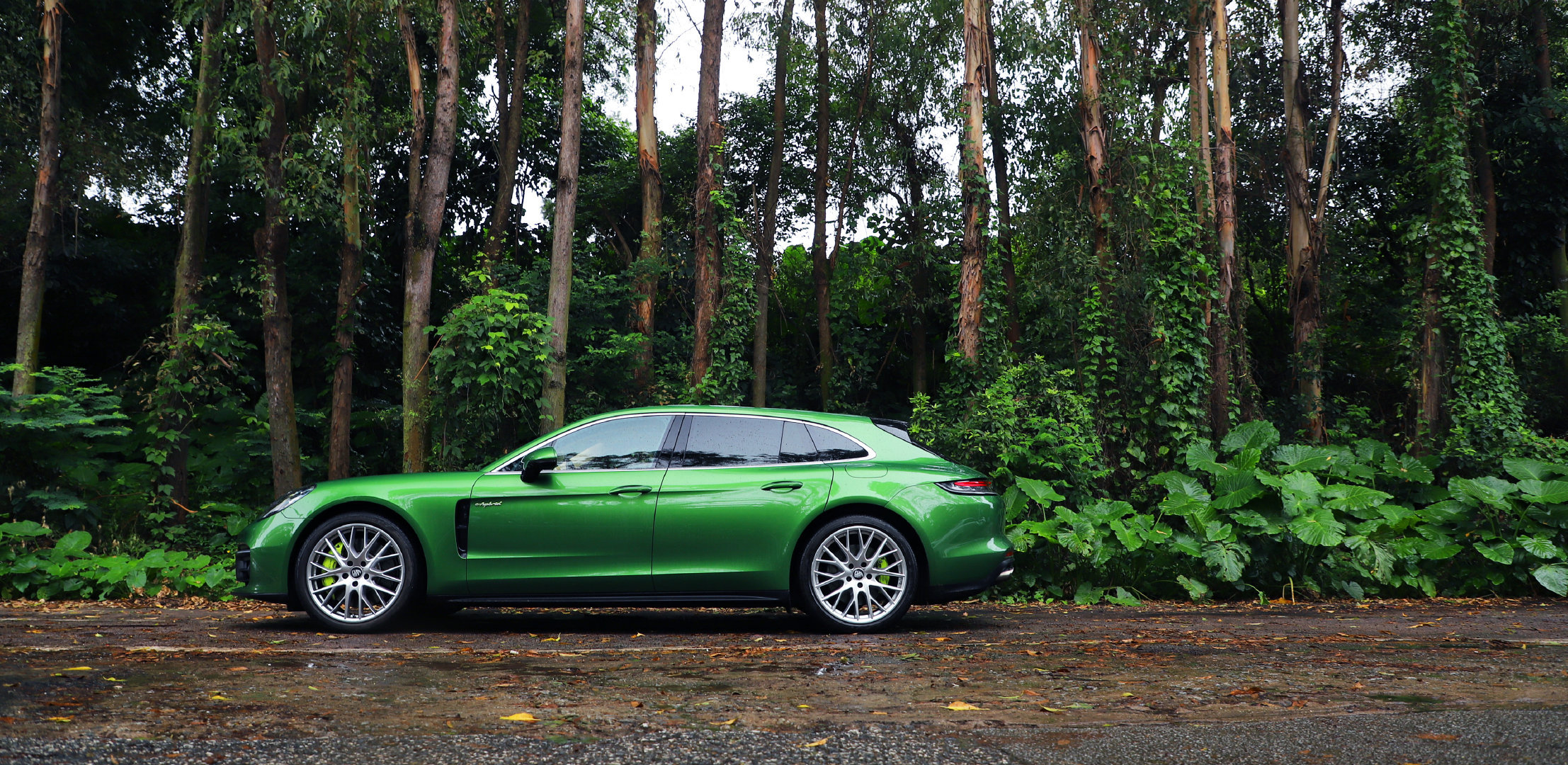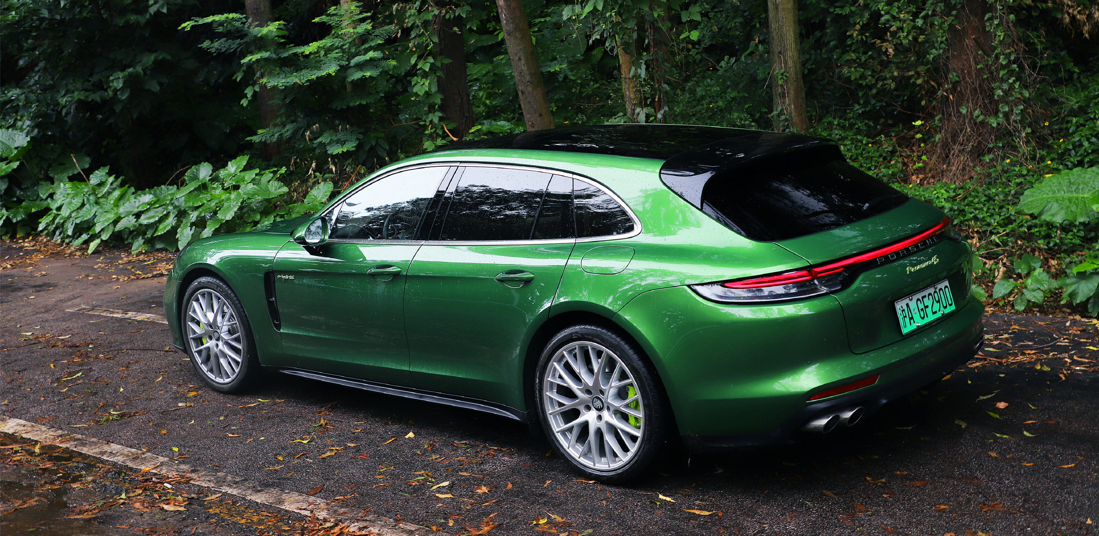 那天,我突然接到电话,只知道去提一辆保时捷试驾车回来,但到现场,才发现是这辆Panamera 4S插混猎装版(下文将用这接地气的称呼)。而且是外绿内米的配色,真是稀有车款配刁钻涂装。