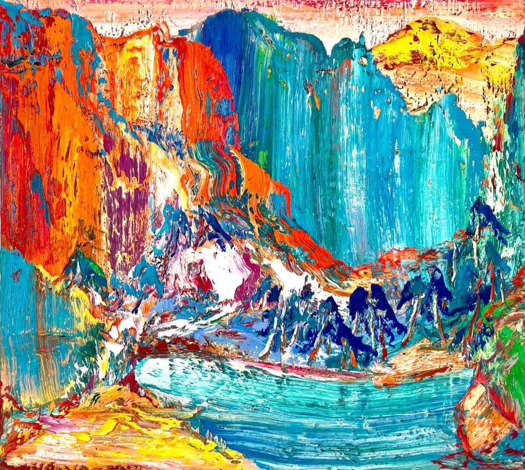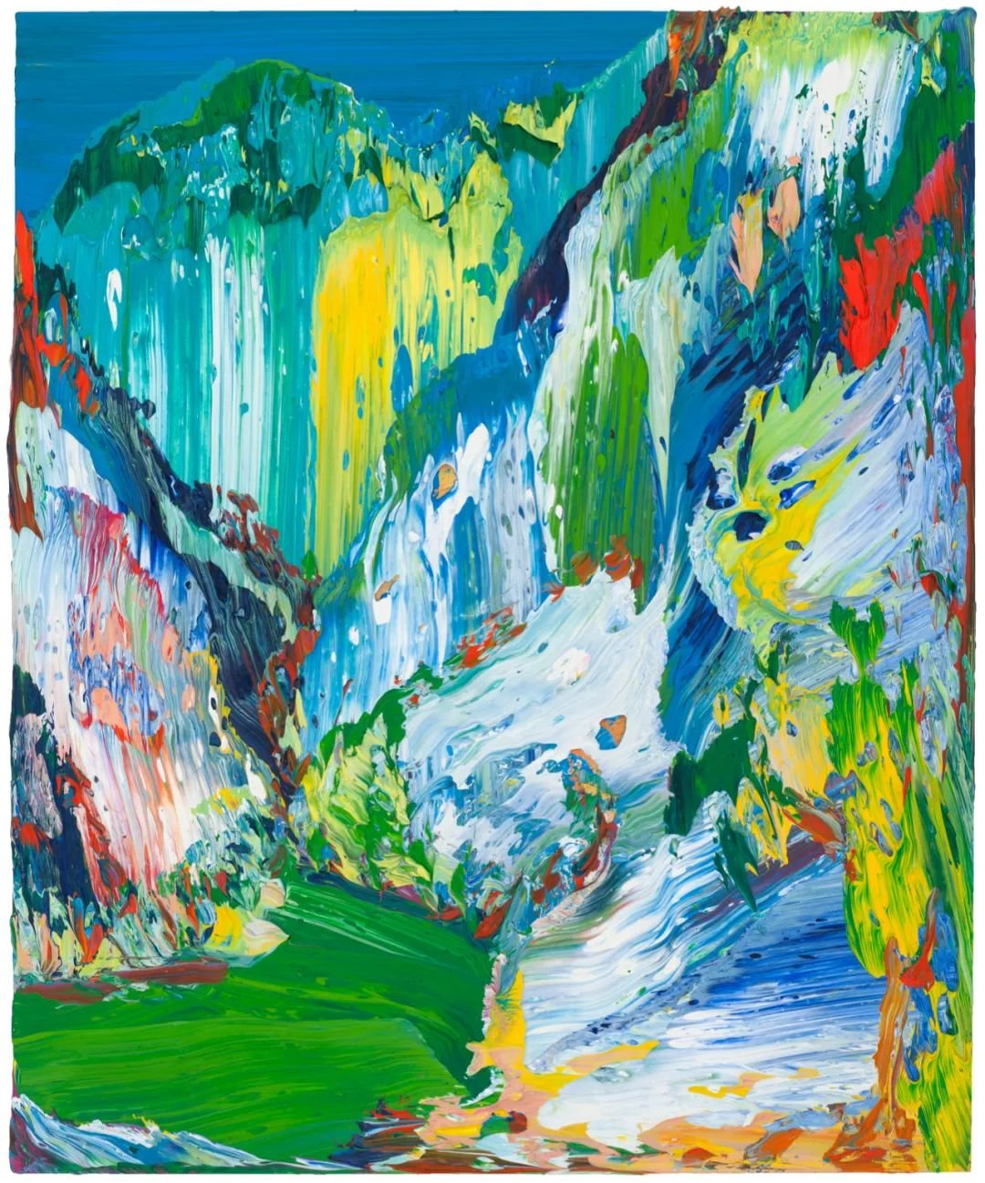 尹朝阳的风景系列为绘画提供了一种久违的尊严感与硬核感。他不同于很多流水线式画家的重要特点在于:无论是残酷青春系列,广场系列、眩晕系列还是现在的山景与艺术家肖像系列,他的绘画永远具有强烈的肉身经验、情感内核、深厚的历史意识。无论是山川还是人物,在强烈的色彩与肌理的对撞后面,充满了生命力的轰鸣。无论尺幅大小,他的绘画都展示了一种内在的生命叙事与密实的构成性,激发所有观者深层的共鸣。