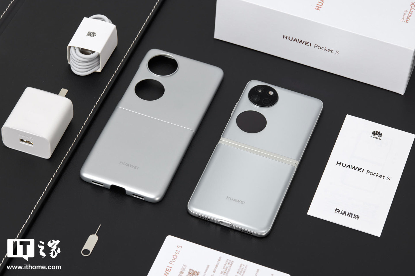 华为 Pocket S 带来了六款时尚配色,包括曜石黑、冰霜银、薄荷绿、樱语粉、樱草金、冰晶蓝。IT之家拿到了冰霜银配色,现在为大家带来开箱图赏。