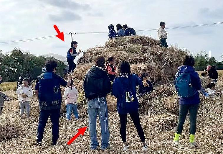 期间,小海绵爬稻谷堆上玩耍的时候,杨颖也跟其他妈妈一样站在旁边耐心等待。不过,明星还是明星,虽然杨颖的着装低调,但是背面看,身材和打扮还是有差距,这身造型看似低调,却也是有认真打扮,很显年轻。其他妈妈都是一整套运动装备,非常干练,杨颖的阔腿裤在稻草堆上看起来有些拖沓,而且,她的耳机线提溜在裤边,看着也很糟心。