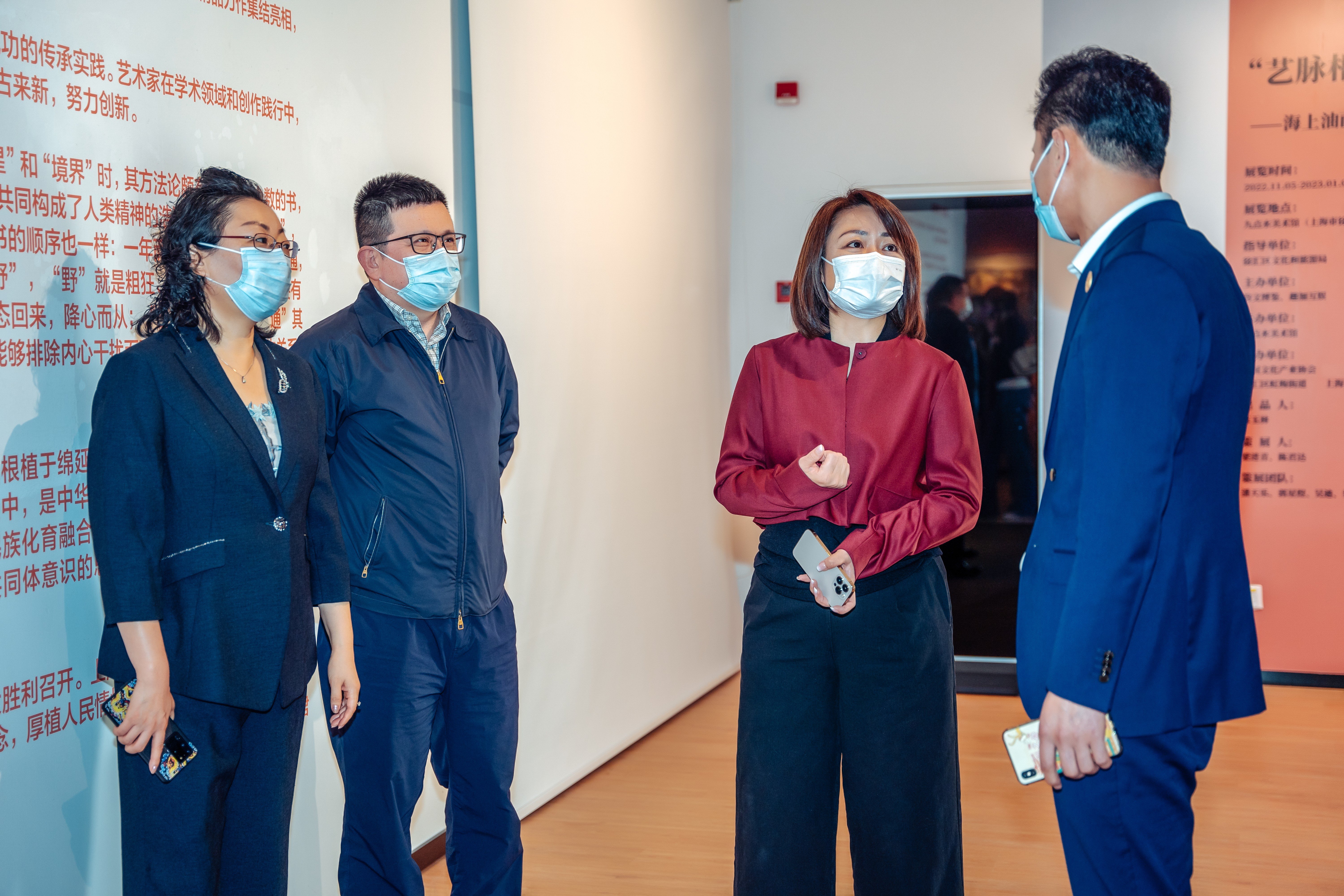 ▲ 嘉宾合影(从右至左依次为:九点水美术馆理事长 陈玉林、徐汇区文化和旅游局局长 伍彦心、徐汇区虹梅街道党工委书记 范润生、徐汇区委组织部副部长 周晨蔚)