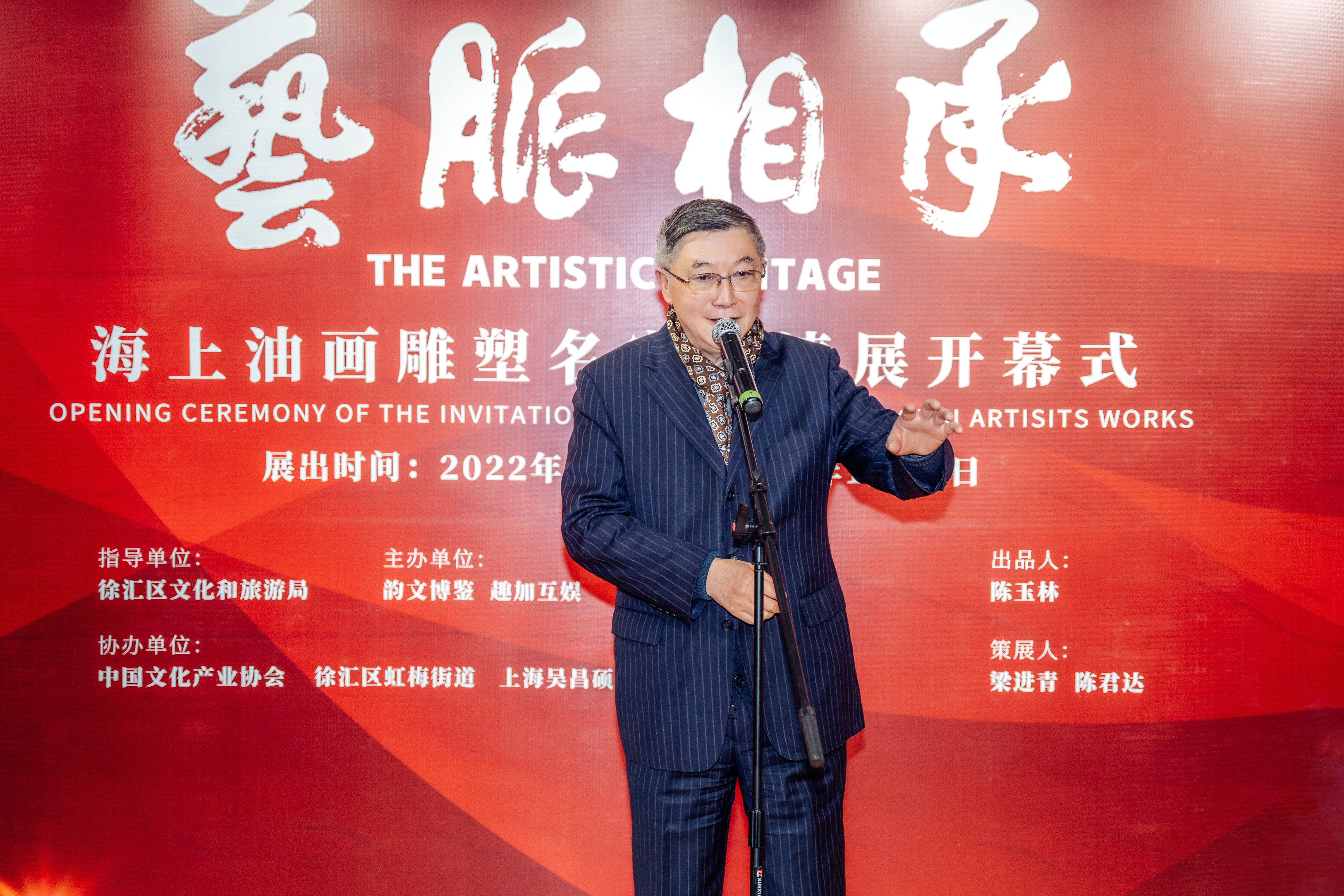 在主持人一一介绍完出席开幕式嘉宾后,徐汇区副区长 王志华,艺术家代表:上海博物馆原馆长 陈燮君、上海大学美术学院雕塑系创建人 章永浩、上海戏剧学院原党委书记 贺寿昌等纷纷上台致辞,从坚定文化自信、海派美术的传承与发展、新时代的文艺创作等各个角度和层面,做了深刻而清晰的阐释,并对九点水美术馆“艺脉相承”展览成功举办表示祝贺。最后,由本次展览出品人、九点水美术馆理事长、韵文博鉴总经理、趣加互娱总裁 陈玉林致答谢辞,展览顺利开幕!