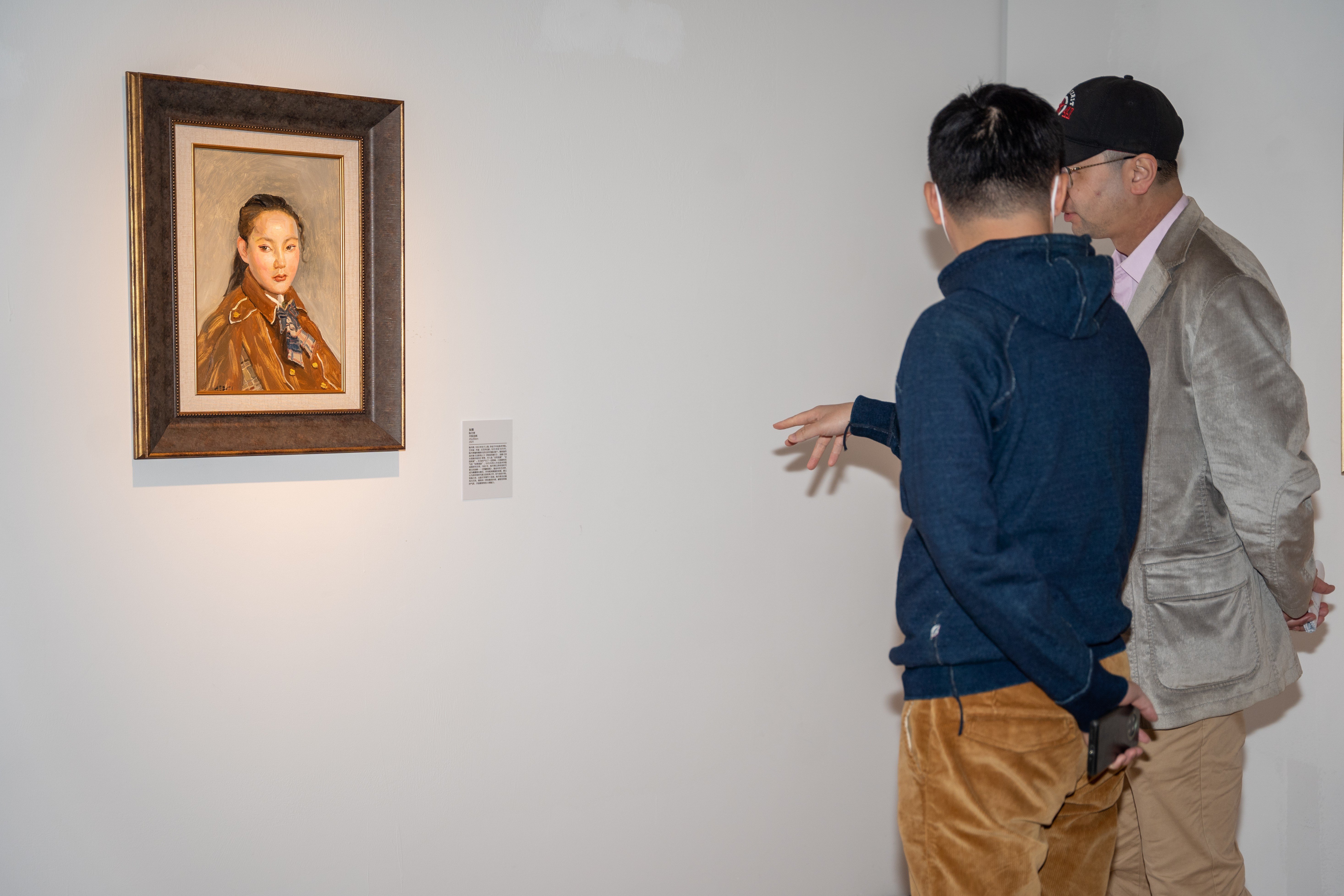陈丹青的参展作品《女孩》,是一幅木板油画,创作于2021年。画中的女孩梳着高高的马尾辫,青春靓丽。据介绍,这位模特其实是陈丹青亲戚家的小孩。将亲友入画,在陈丹青过往的肖像作品中并不多见,这也是该幅作品首次公开亮相。在展览开幕当天,画作所描绘的女孩本人也亲临了展览现场。