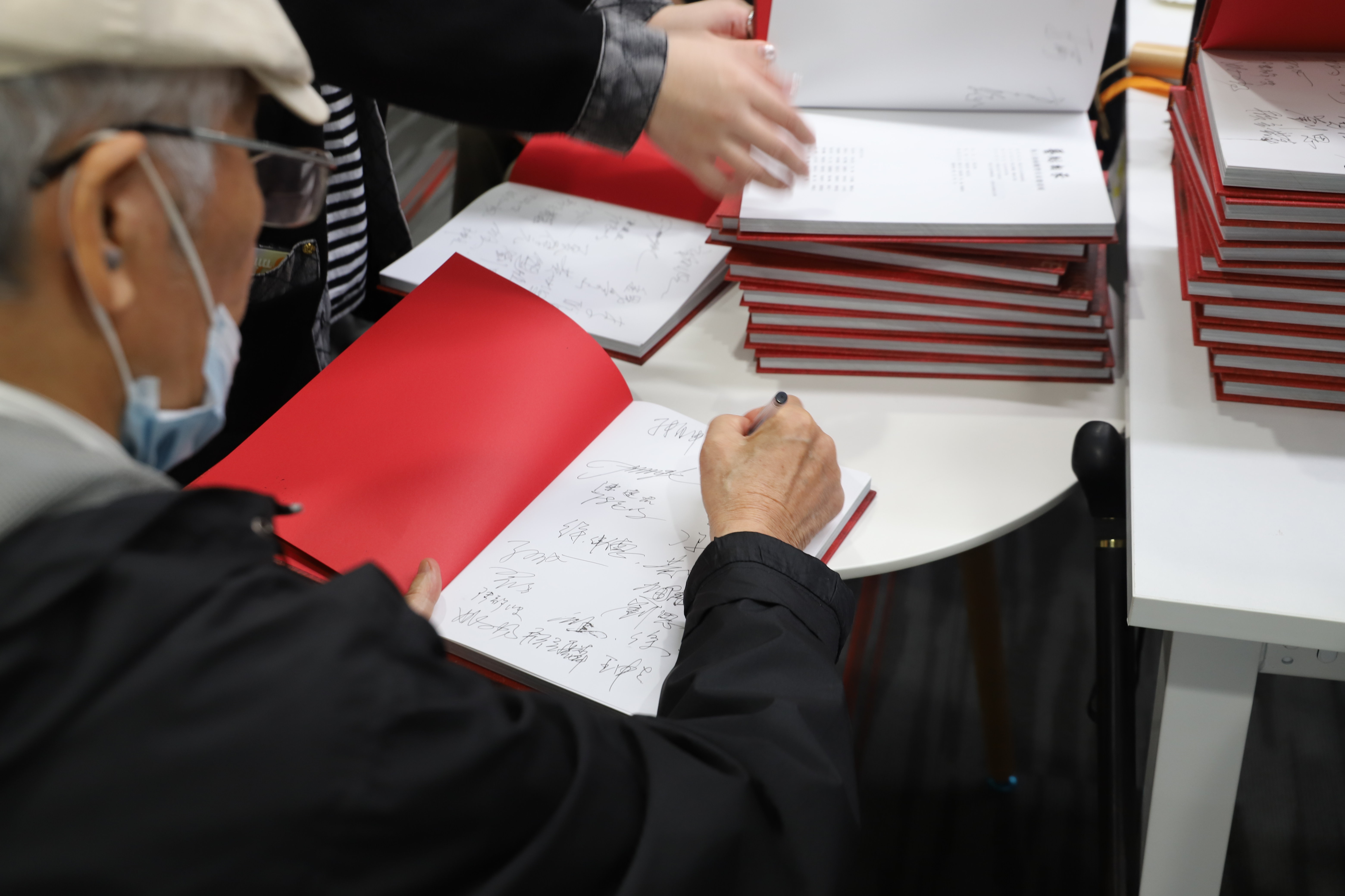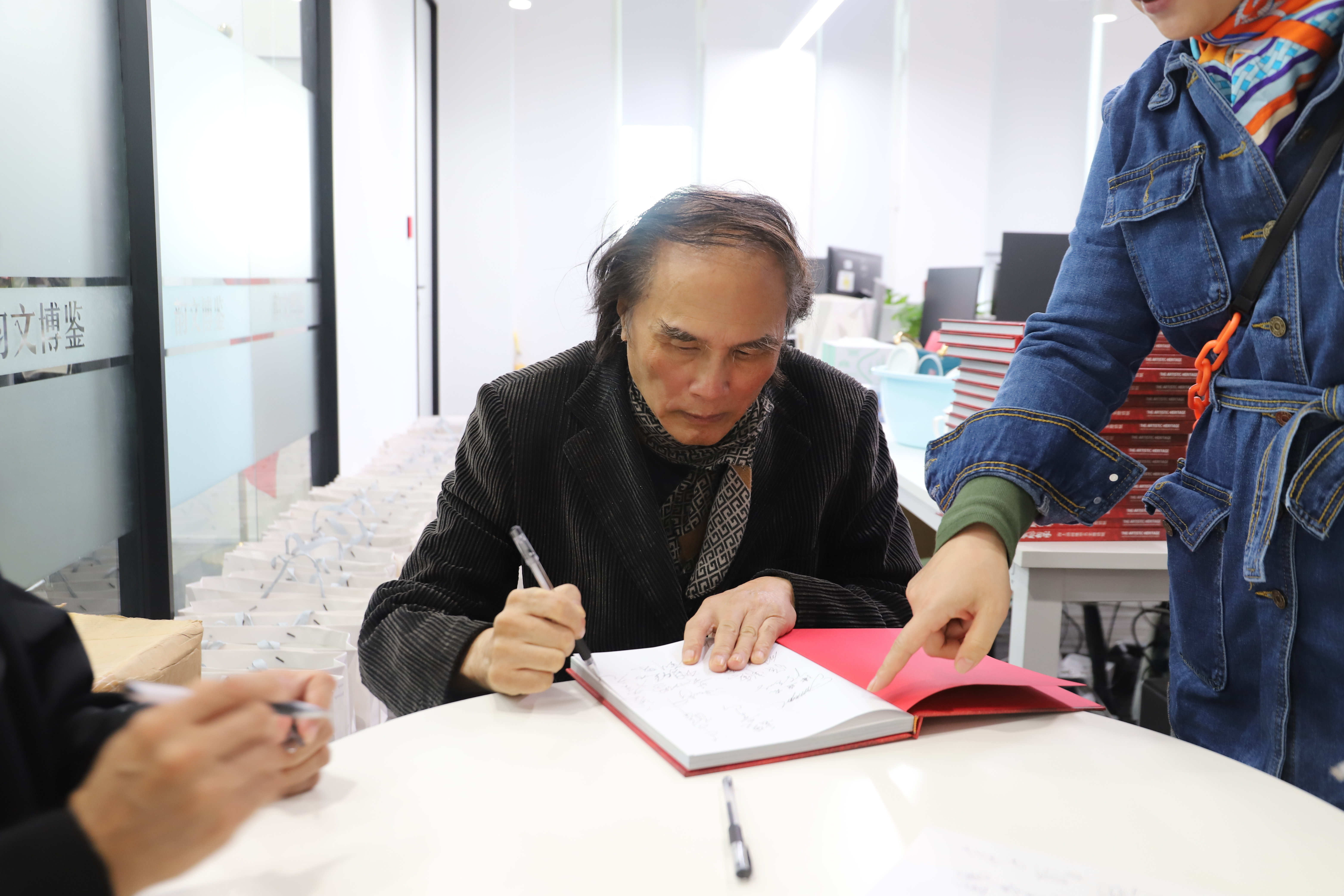 ▲ 艺术家为展览画册签名:章永浩