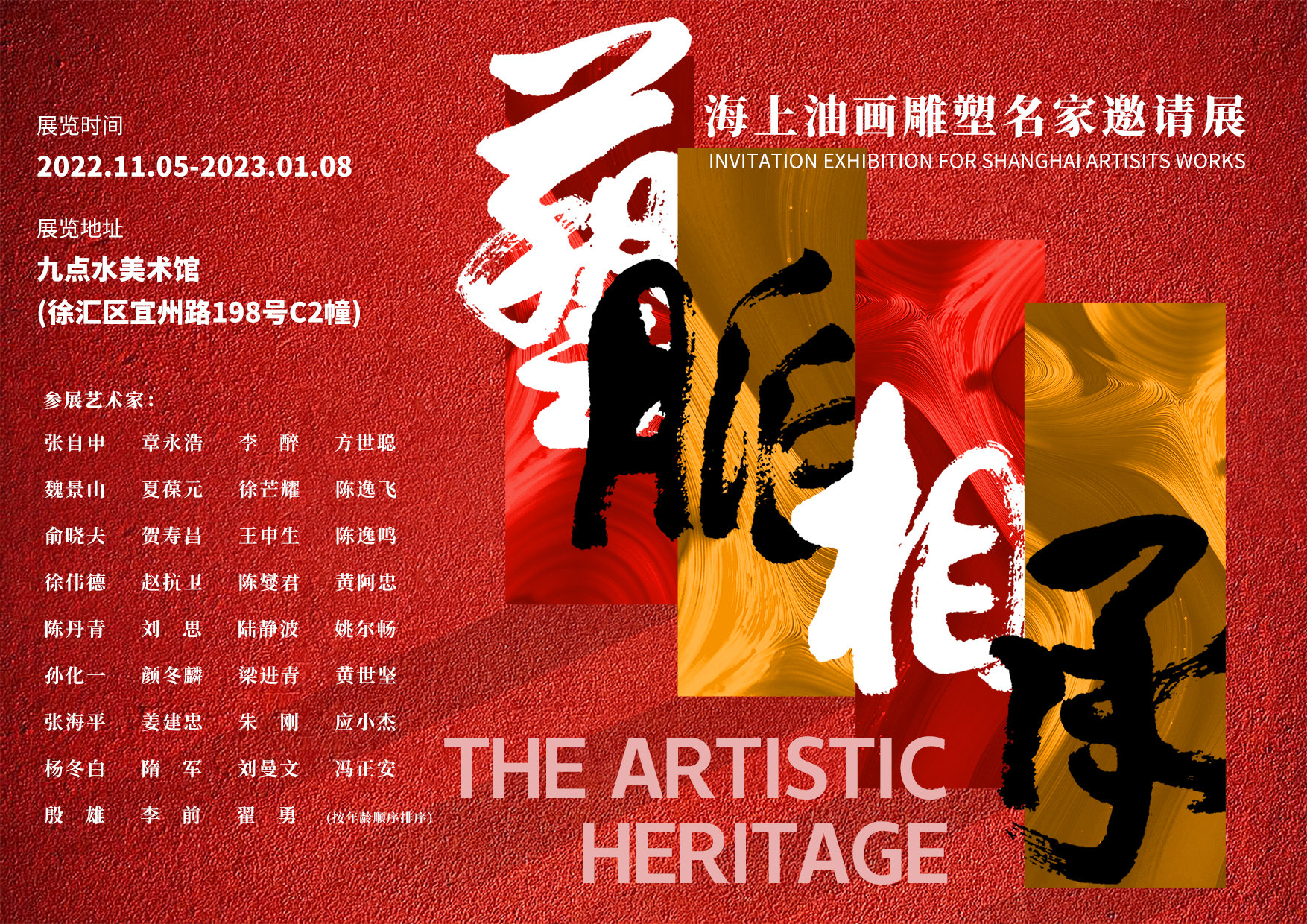 历经数月的筹备,上海九点水美术馆年末大展“艺脉相承——海上油画雕塑名家邀请展”于2022年11月5日正式开幕。
