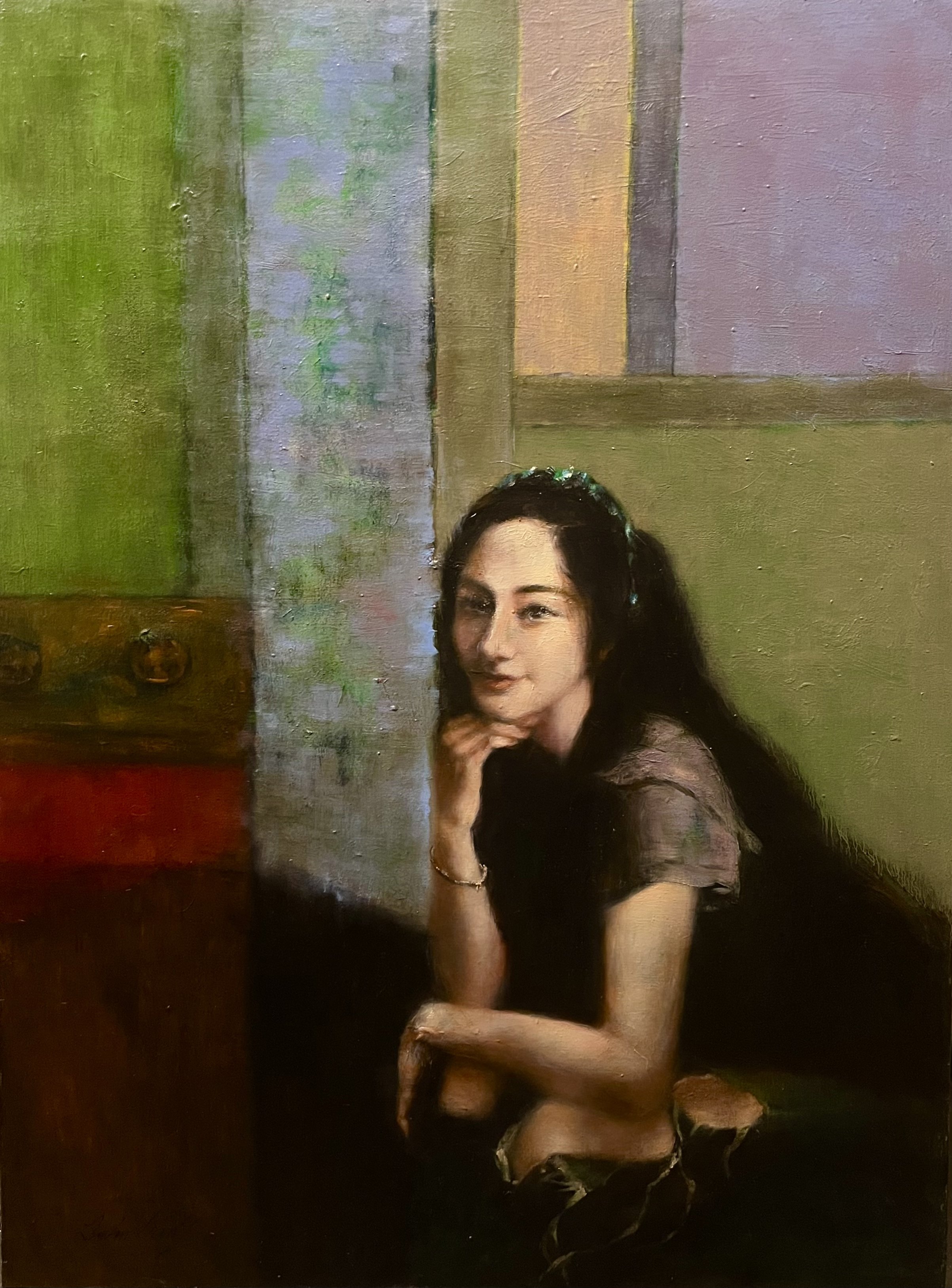 ▲ 梁进青 油画2021《女孩》90x120cm