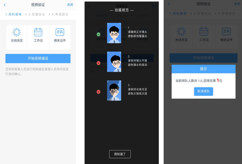 9、视频验证,确保视频的硬件要求都符合后点击“开始视频通话”就可以与期货公司工作人员进行视频连接,若出现排队界面,稍等待一下就行,直到视频验证通过后继续进行下一步。要注意,视频完不要直接关闭软件,还有步骤没完成。