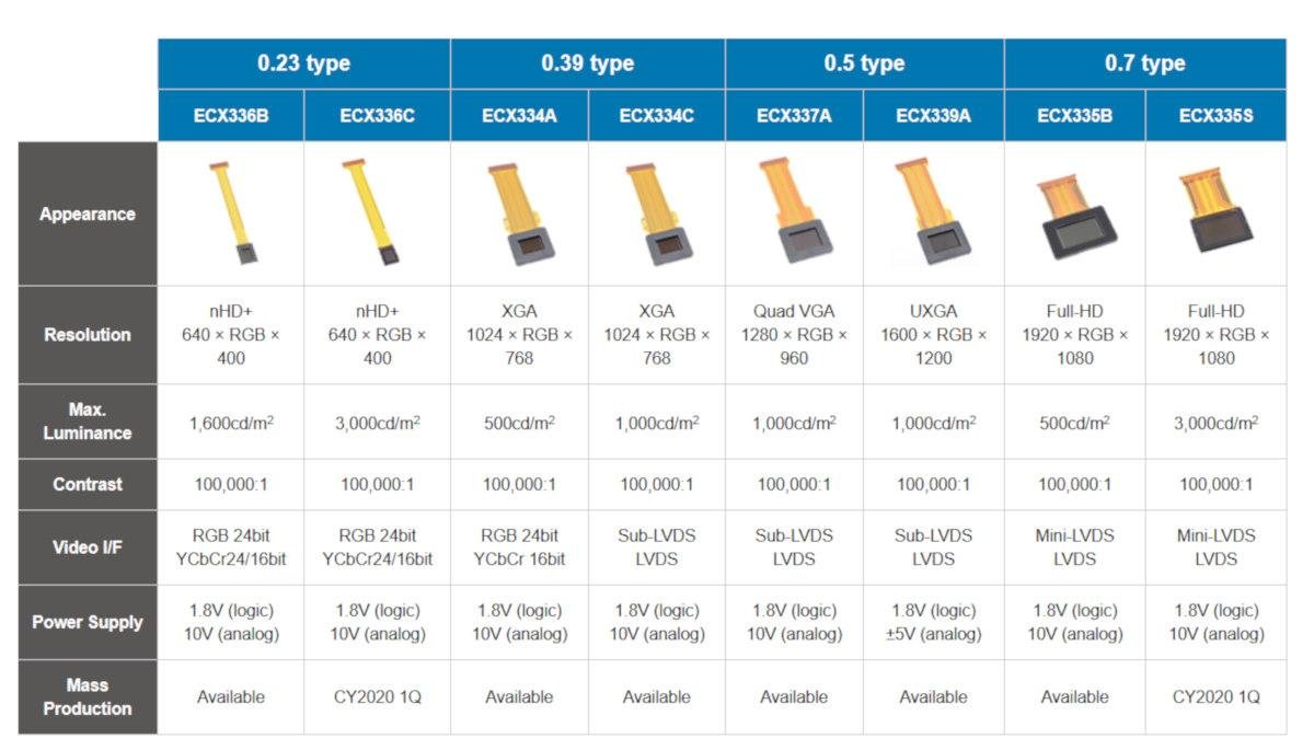 索尼Micro OLED产品线如上。