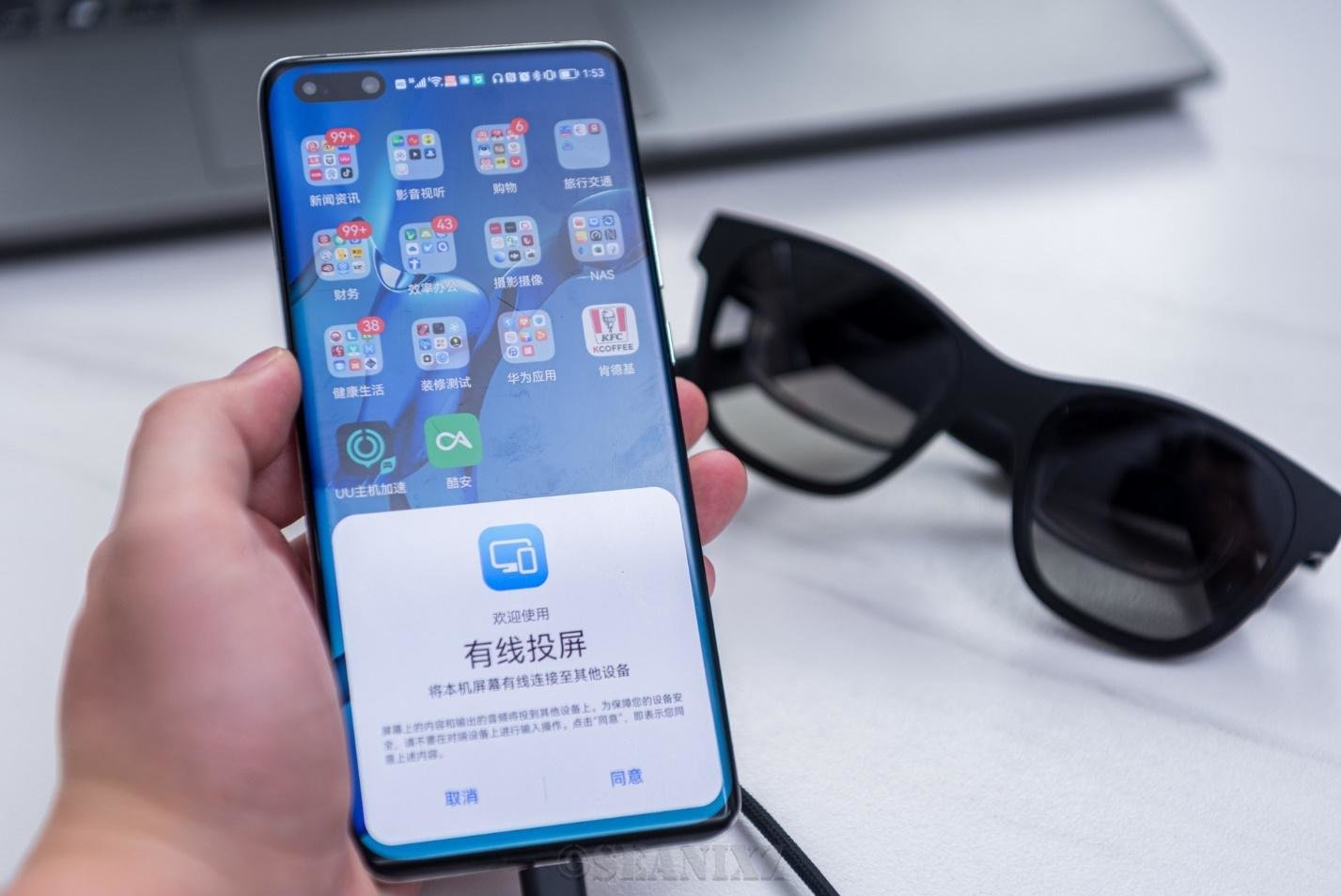 比如我手里的华为P40 Pro,跟Nreal Air连接后,配合Nreal App,可以开启投屏模式,眼镜显示的是手机画面,这是绝大多数手机和平板都能实现的模式,秒变私人影院。