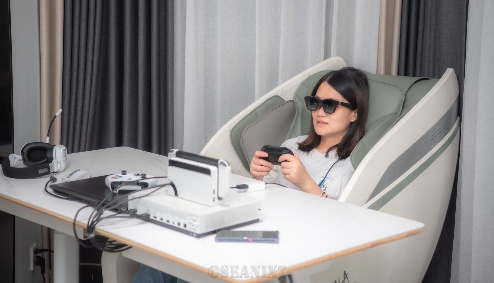 优势是偷偷躲在角落躺着玩游戏不会影响家人,也不会降体验,尤其是在按摩椅上躺玩是真的舒服。