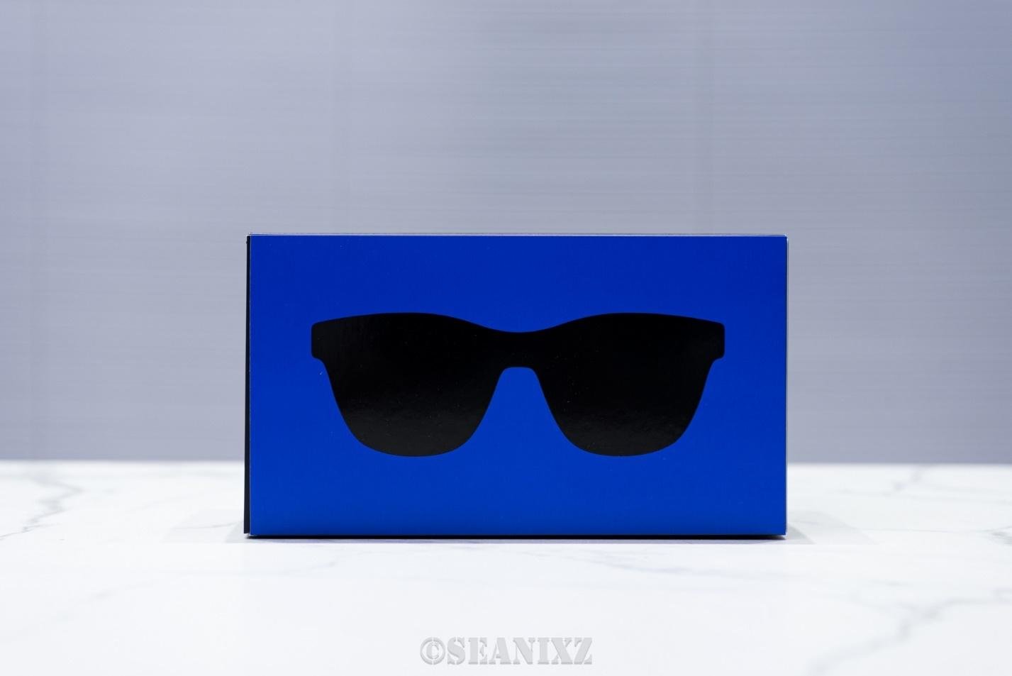 首先来看看设计。外包装,一个蓝色的盒子,挺小的,与普通墨镜包装差不多。
