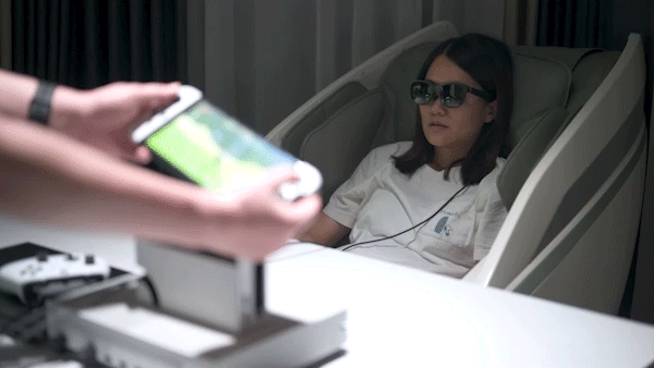 眼镜式的佩戴方式有着非常高的舒适度,站姿、坐姿、躺姿均无影响,没有姿势限制,适用场景也非常多,白天晚上都合适,不会像眼罩式设备那么闷,久戴不累。