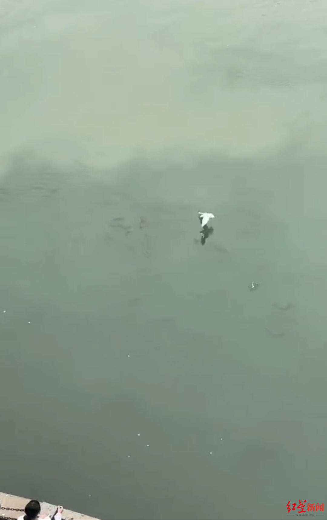 网友站在合江门广场观景台拍摄的视频显示,十几条鱼正在巡游,江面不时泛起涟漪,白色的红嘴海鸥在鱼群上方飞翔,好一幅自然和谐的景象。红星新闻记者注意到,这些鱼之所以在视频中被清楚地记录,因为其个头目测几乎都在40厘米以上,并不是常见的细小个体种群。