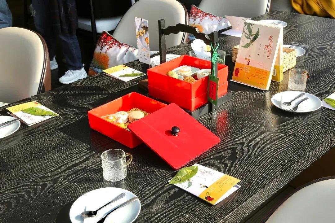风起江南,杭州又到了满城桂花香的时节。而在西湖边的新侨·有意思书房,这次选择打破物理边界,融入自然风光,将本次新书分享会地点选在可以俯瞰西湖的180°全景露台上,同时与新侨饭店一起,以桂为引,推出了《我是陈桂花》闺蜜下午茶套餐。新侨饭店总经理竺丽萍指出,《我是陈桂花》闺蜜下午茶的应季推出,意在与都市繁忙的人们共享一份带着香气的阅读之趣、茶憩之欢。