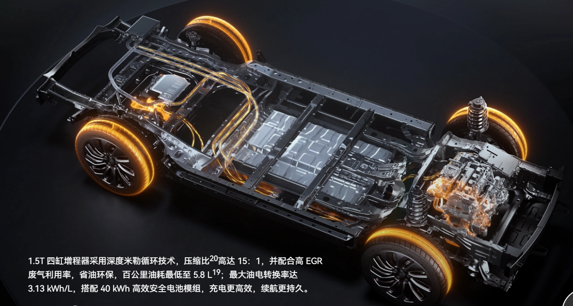 增程发电系统方面,理想L9采用由理想汽车控股的理想新晨公司自主研发和生产的1.5T四缸增程器,热效率最高达到40.5%,CLTC工况下热机油耗低至5.9升/100公里。理想L9的CLTC总续航里程为1315公里,WLTC总续航里程为1100公里。