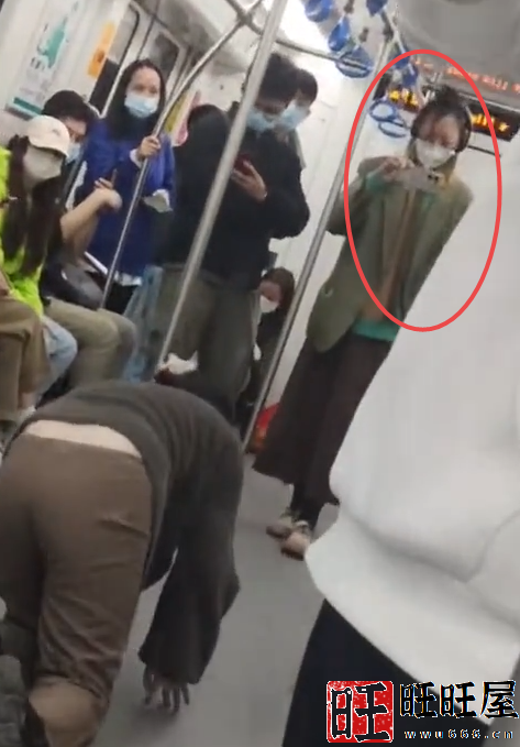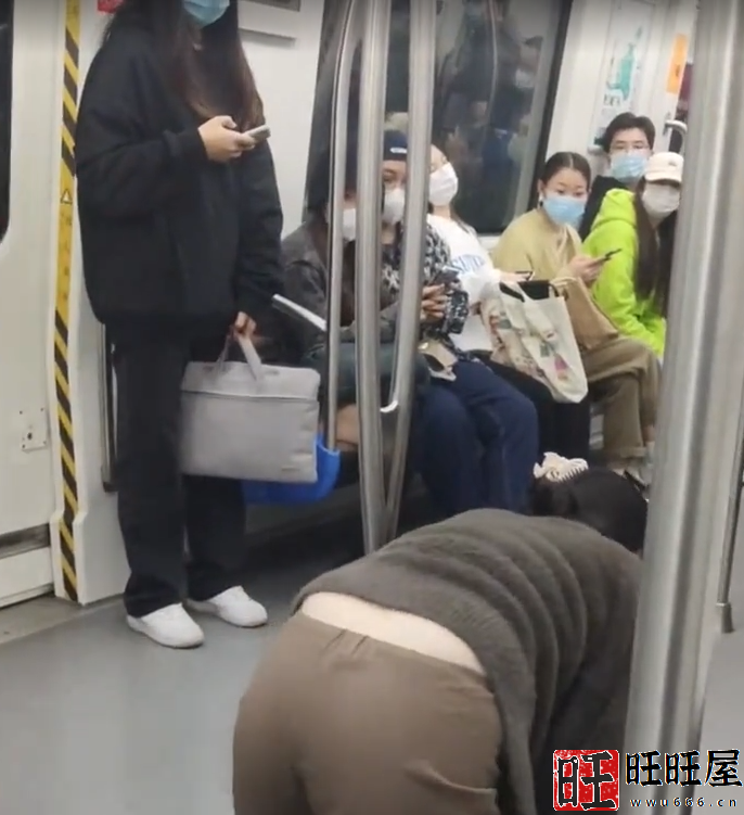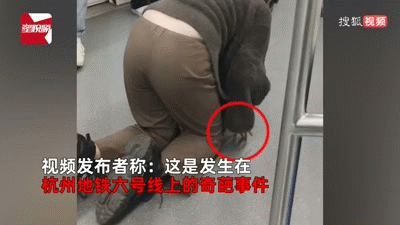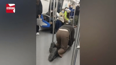 根据网友提供的视频,只见一名女子穿着灰色上衣棕色裤子,在地铁车厢里手脚触地缓慢爬行。