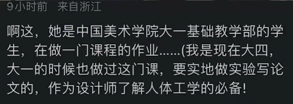 事件经媒体报道后引发关注,有评论留言称爬行女疑似是中国美术学院的学生,她诡异的行为其实是在完成一项课程作业。