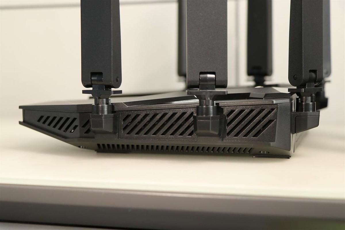 机身的两侧和底部都设计有栅格形散热孔,AX5400 Pro+也内置了两块更大的硅与铝镁合金双层全覆盖散热片,同时还加入了石墨烯高效散热涂层,所以完全不用担心机身会出现高温死机问题。