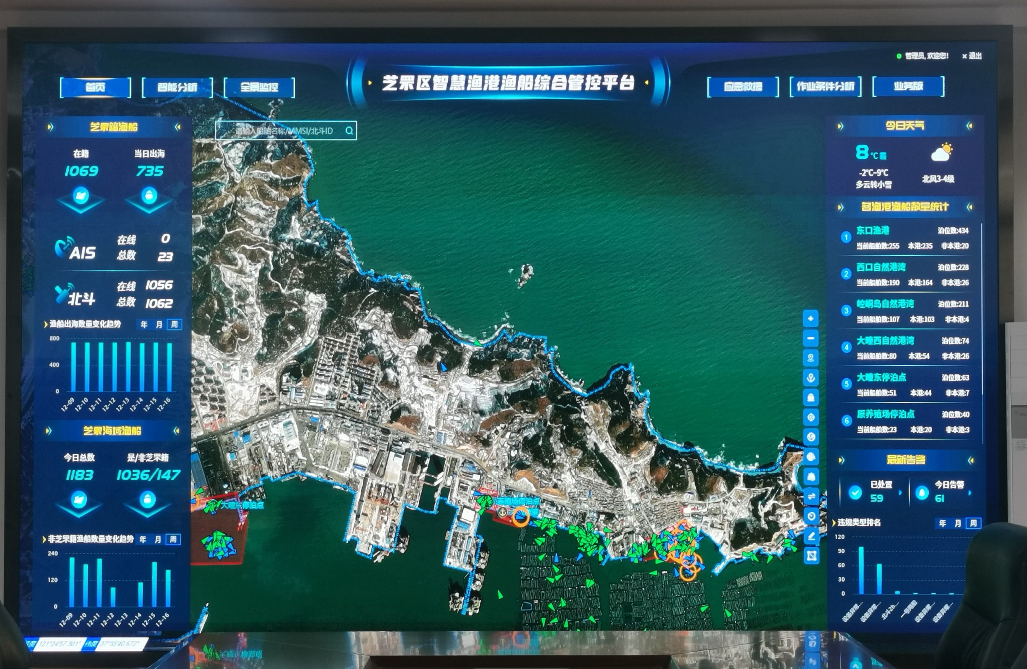 无独有偶。在烟台市芝罘区,山东联通推出智慧渔港综合信息服务平台,打通船舶动态监管、渔港视频监控、雷达视频联动、AIS船舶识别等多个子系统的基础数据,对渔港、渔船、人员进行全天时、全天候、全方位监测的同时,可实时开展数据分析处理、目标研判和持续跟踪、高清远视距与日夜视频成像,并与烟台市渔船渔港动态监管平台无缝对接。“芝罘区码头多、船多,之前巡查任务繁重,不安全;如今有了监控大屏后,所有码头的情况都看得清清楚楚,渔民出海也有了安全保障。”烟台芝罘区海洋发展和渔业局党组成员宫书峰表示。