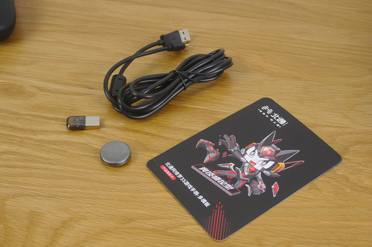 阿修罗3S支持有线、2.4G无线和蓝牙三模连接,所以除了说明手册还配备USB Typc-C数据充电线、2.4G无线接收器,以及替换的十字键。