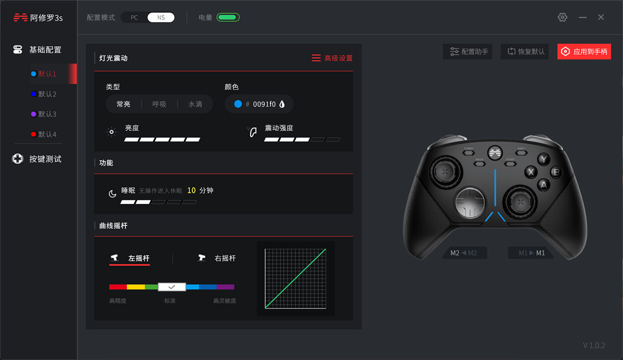 如果说宙斯是北通第一梯队的旗舰,那么就配置而言阿修罗3S加入了些宙斯所不具备的进阶功能,比如摇杆灵敏度物理调节、扳机键线程物理调节等等,那么就让我来体验一下吧。