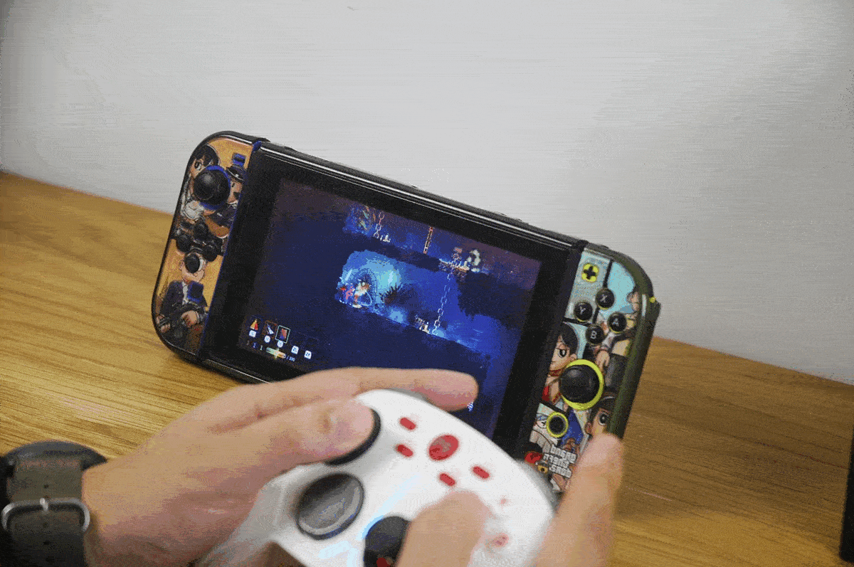 《死亡细胞》是一款很不错的Roguelike游戏,因为节奏比较快,所以对于手柄手感和操作控制都有比较高的要求,每一层都要小心应对一个不小心装备掉光回头重来,虽然这游戏的确适合掌机游玩,不过我个人觉得Joy-Con的手感过于生硬,而阿修罗3S在跳跃、出招连击上有着很顺滑稳定的操作性能,动态瞬时连续操作的响应效率很棒,同时震动体感也带来很好的游戏沉浸式反馈。