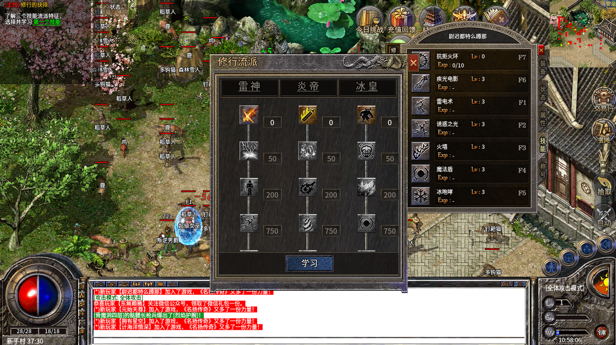 最近发现有一个叫名扬传奇的版本,宣传语说是很考验玩家对传奇的理解,骨灰玩家能吊打氪金的。这不巧了么,我玩传奇的时候,GM可能还在穿开裆裤,跟我吹对传奇的理解?进去一看发现能不能吊打氪金大佬暂且不论,这个版本的职业创新还是挺有意思的,直接一把拉出9种。战神、武神、狂魔这一看就是战士分支,有极致攻击流,有肉盾流,有暗杀流,法师是雷神、炎帝和冰皇,按元素属性分的,名字过于中二引起我不适,道士是毒尊、医圣和兽神,用毒带狗都可以理解,医圣看起来是个纯辅助,不知道solo的话靠什么活,可以去尝试一下。反正升级快,我直接玩9个号,享受一下在官方不可能享受到的体验。
