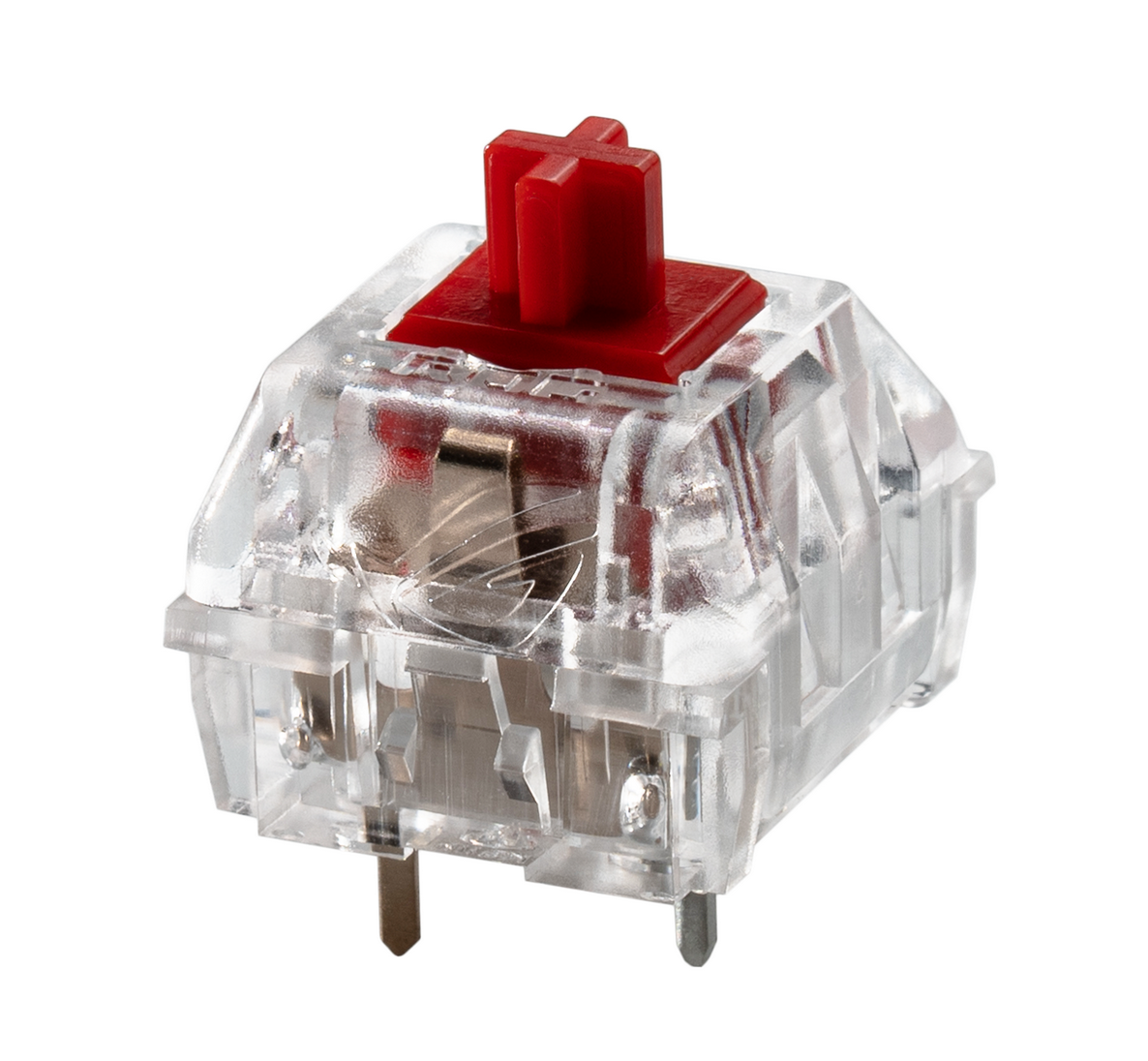 记得ROMER-G轴刚出来的时候很快就反馈不太好,那键卡得,这么多年过去了,似乎改进了些,但感觉结构硬伤似乎是难以彻底克服。中心发光的结构,倒是后来者ROG的RX轴玩转了,加入剪刀脚结构后,导芯稳定的同时边角按压时极为顺滑,顺滑度(98.51%)从数据来看是近乎完美的。再看ROMER-G L轴,参数设定(行程、力度)都很符合游戏需求,但手感只算基本能用,没有垫底已是欣慰了,也许罗技的GX轴会好一些。