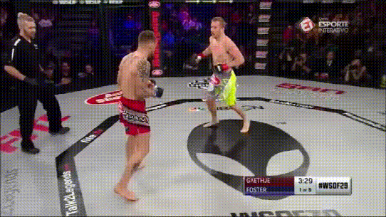 在2016年3月WSOF 29中,“平头哥”的腰带卫冕战对上Brian Foster,本场比赛“平头哥”仅1分43秒便TKO对手,使用技术正是低扫踢。