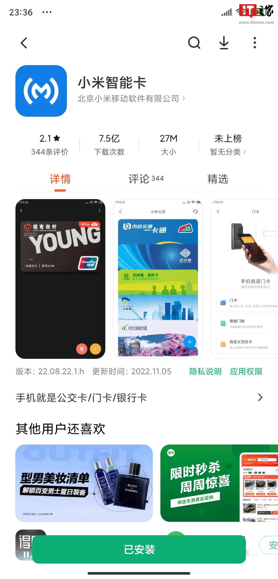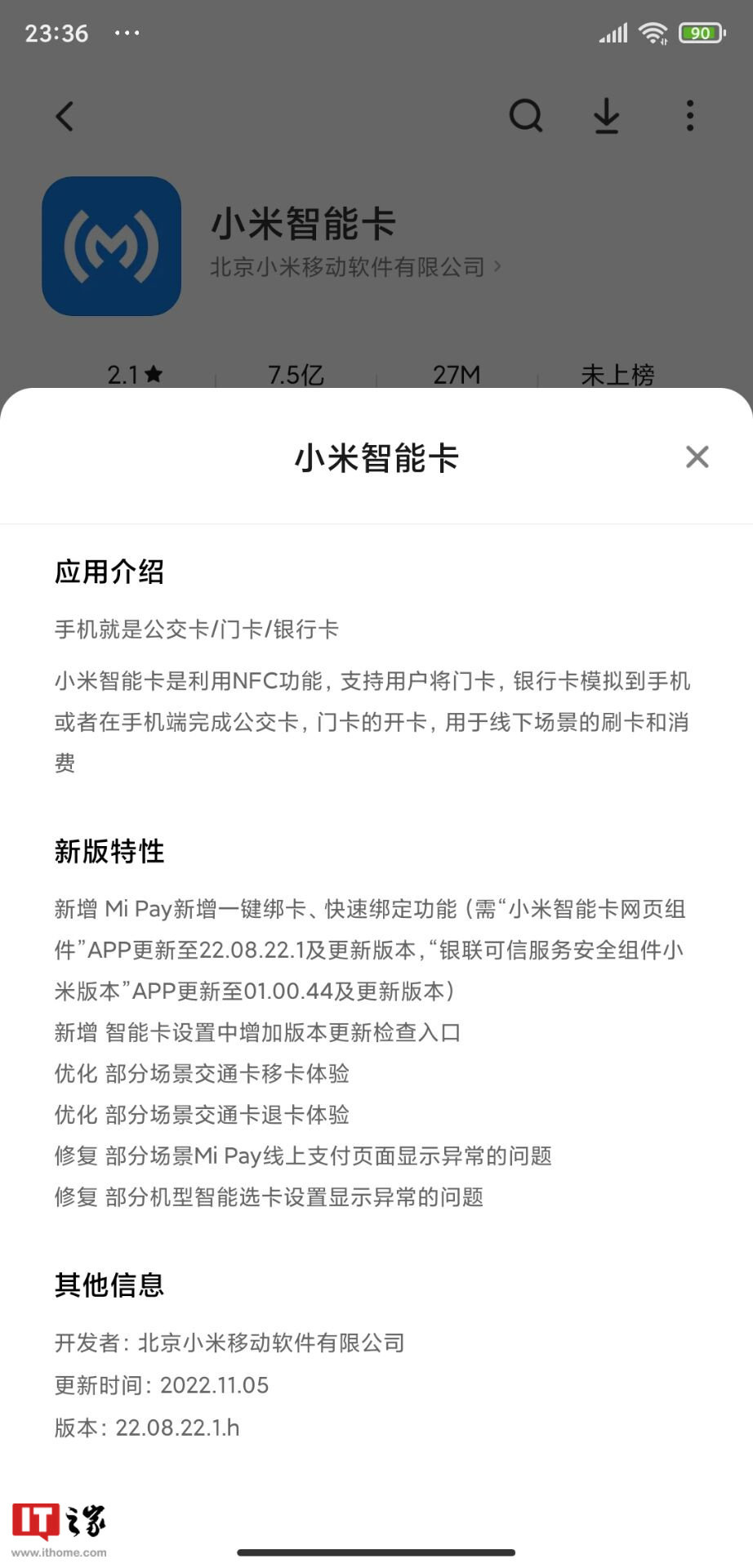 IT之家 11 月 7 日消息,手机就是公交卡 / 门卡 / 银行卡,小米智能卡是利用 NFC 功能,支持用户将门卡,银行卡模拟到手机或者在手机端完成公交卡、门卡的开卡,用于线下场景的刷卡和消费。