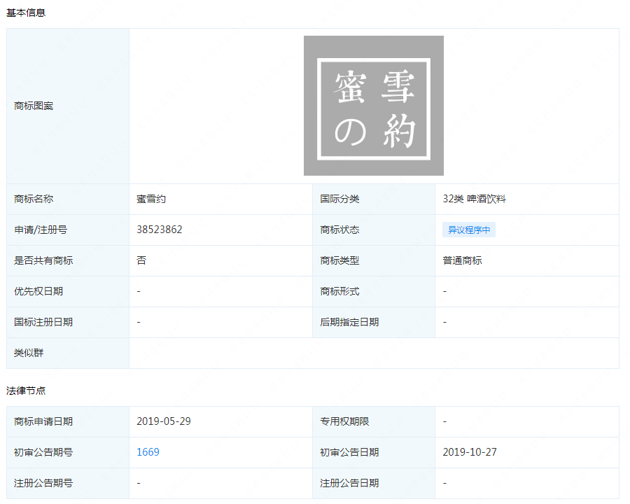 据了解,2019年,蜜雪冰城公司在经营过程中发现市场中出现大量店铺名称为“蜜雪约”的饮品店,通过查询发现,“蜜雪约”品牌经营者已经申请注册了大量“蜜雪约”相关商标。
