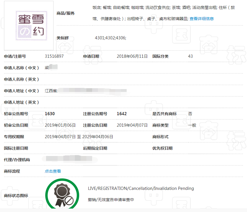 像“蜜雪冰城”“雪王及图”“蜜雪”等核心商标都做了全类别注册,可以说,蜜雪冰城在“防御商标”申请注册环节已经做的相当不错了,但还是不能完全避免恶意攀附。
