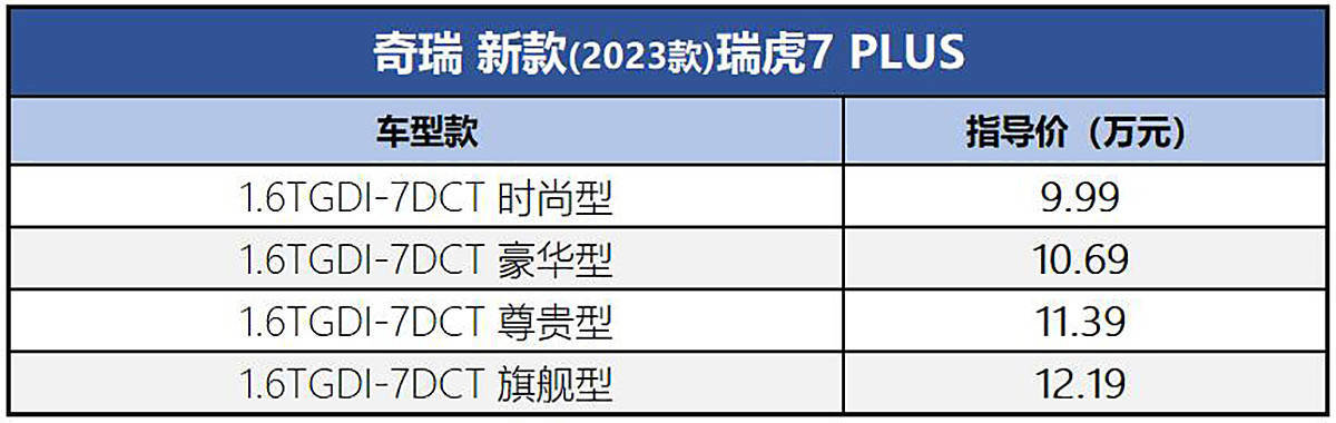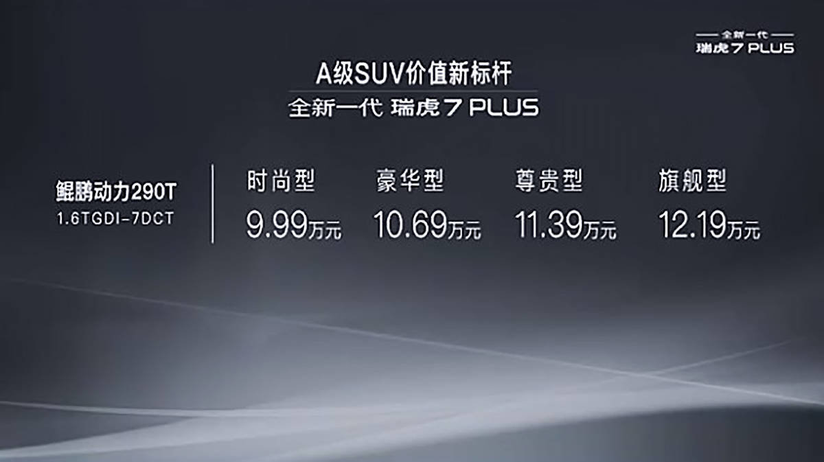 奇瑞品牌旗下紧凑型SUV“新款瑞虎7 PLUS”四川成都宣布正式上市,官方指导售价区间9.99-12.19万元,共推出4个型号车款。作为改款车型,新款瑞虎7 PLUS整体采用了全新的晶彩造型外观,整体更具时尚感。