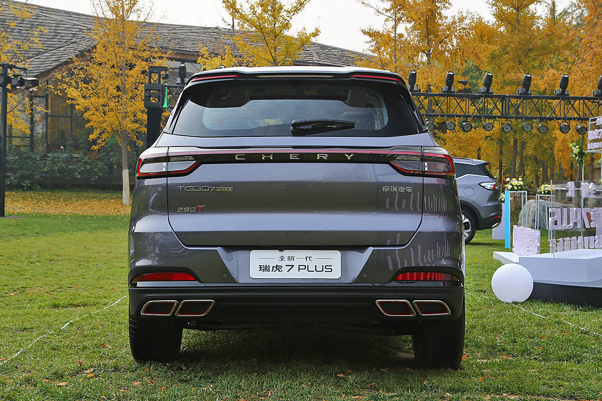 车辆尾部,新款瑞虎7 PLUS配备了目前较为流行的贯穿式设计尾灯组,位于车尾下方的排气则采用双边共四出的布局方式,不但提升了车尾部分的视觉层次感,而且还进一步强化了新款瑞虎7 PLUS的运动气息。